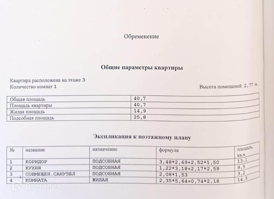 Общая площадь 40.7 м2