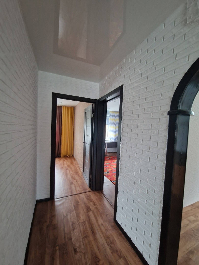 Продам  3х комнатную улучшенной планировки 9-1 дом. В квартире косметический ремонт, минимальные вложения, по клейка обоев на ваш вкус. Балкон остекление, окна пвх, пол ровный, натяжные потолки, межкомнатные двери, сантехника поменяна. Остаётся частично мебель. Хорошая входная дверь. В коридоре частично декоративная штукатурка. Освещение на балконе. Красивый вид из окна. Во дворе детская площадка. Детский сад, две школы, магазин, автобусная остановка и тд. Любой вид расчёта. Наличные или ипотека