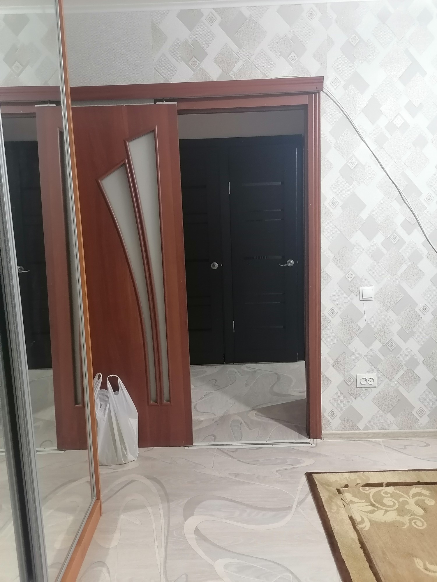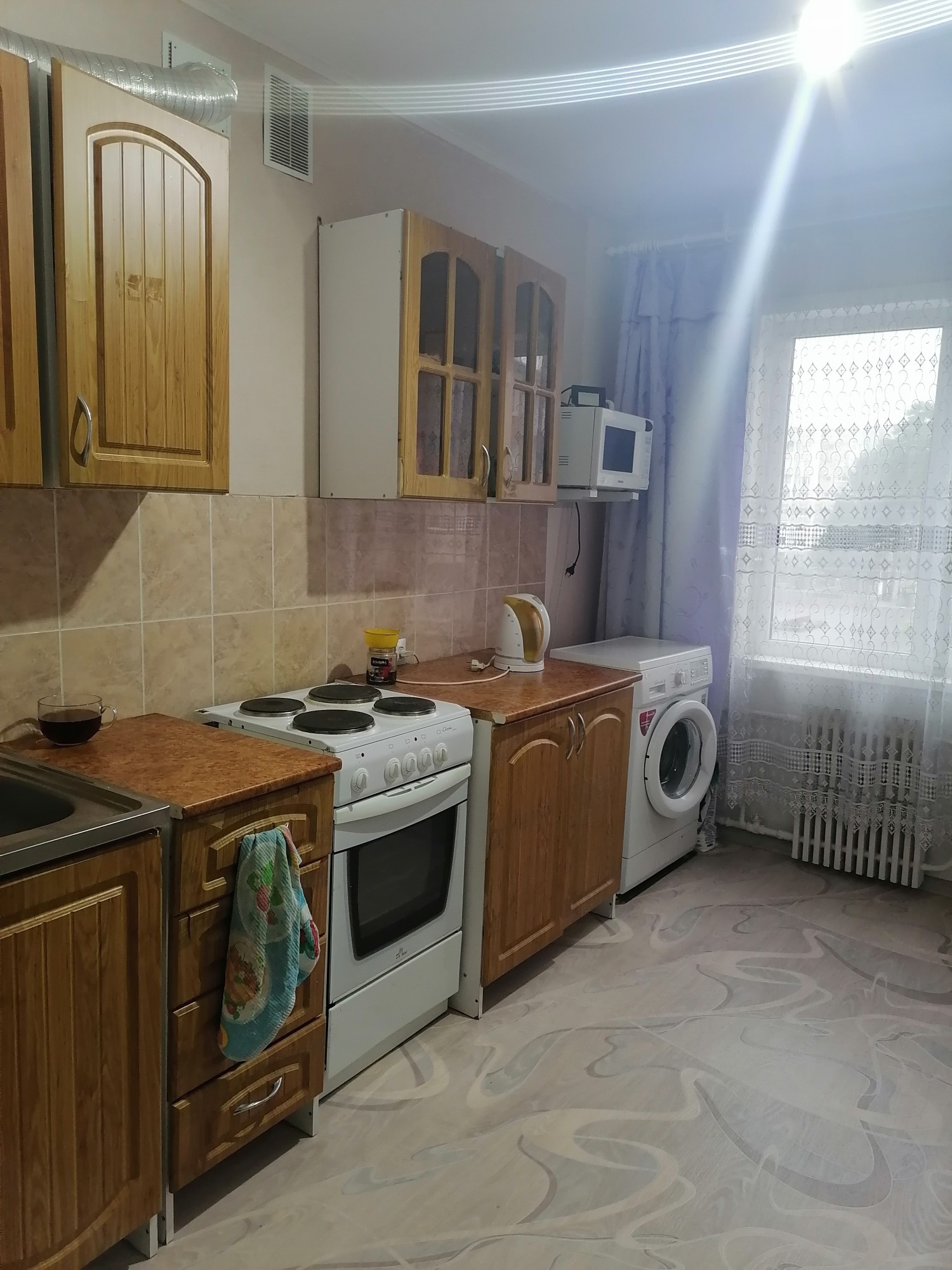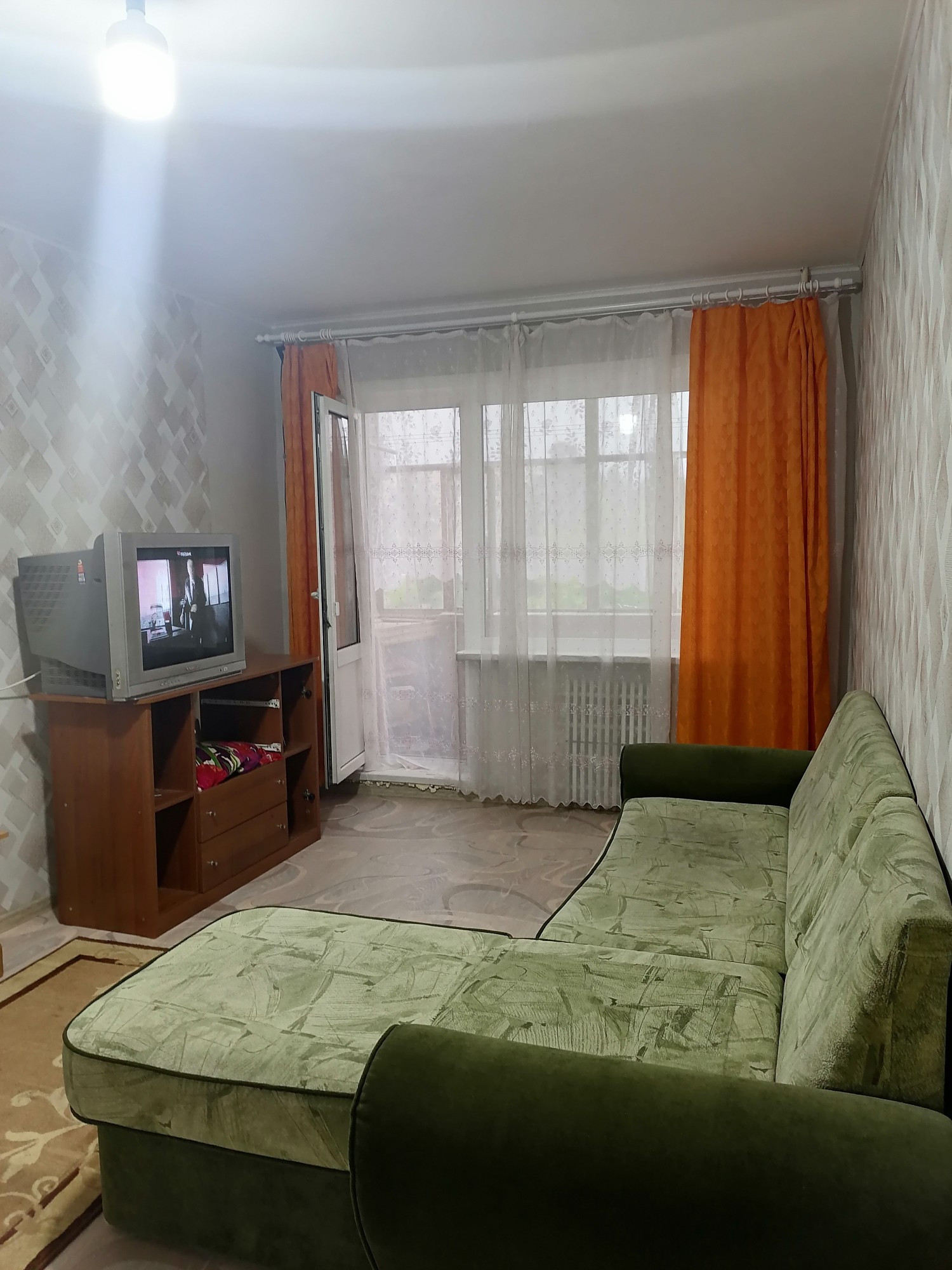 Окна евро, пол новый линолеум, м/двери новые, потолки выравнены побелка, ванная кафель, сантехника новая, балкон застеклен деревянными рамами, входная дверь евро.
