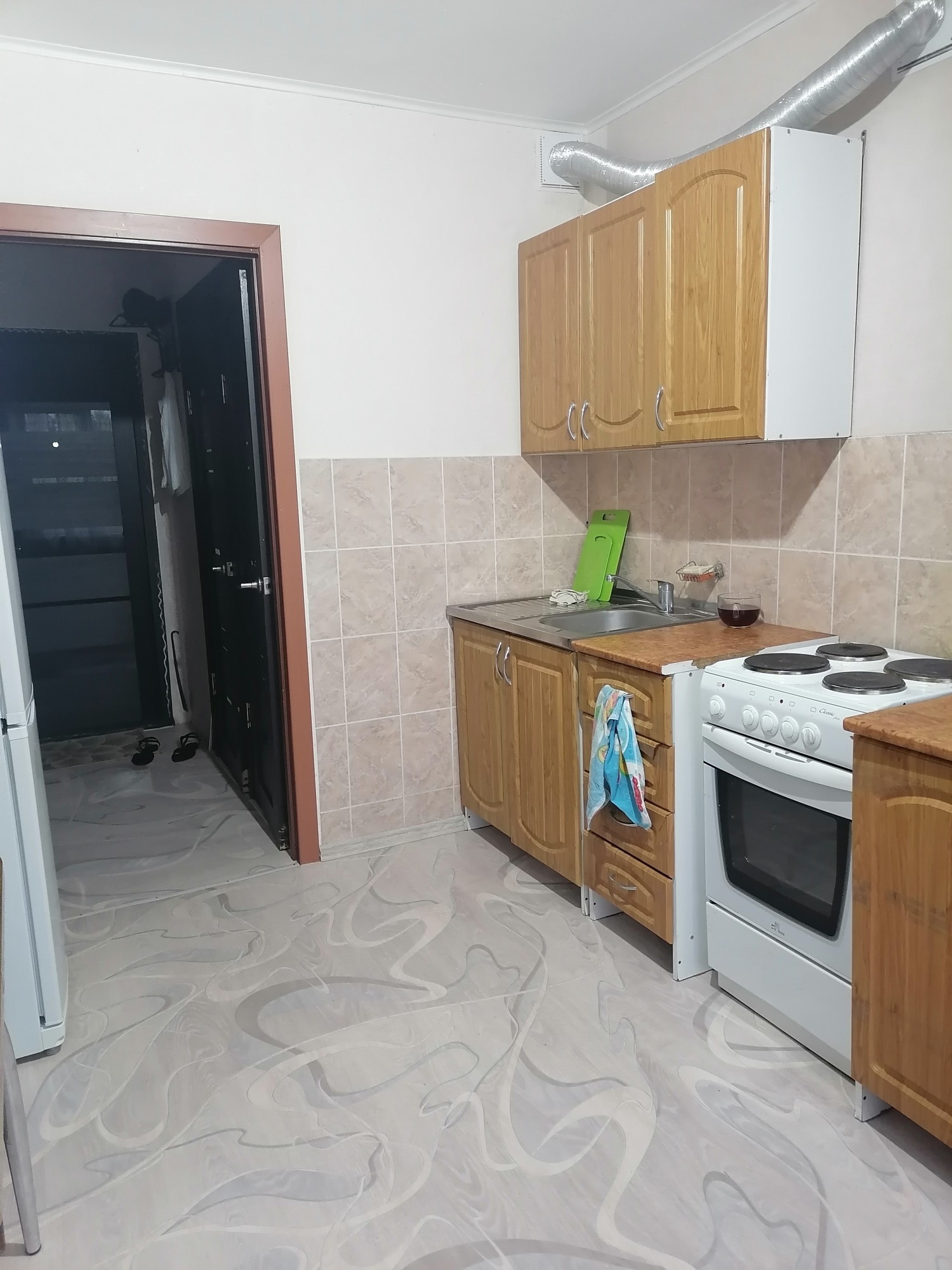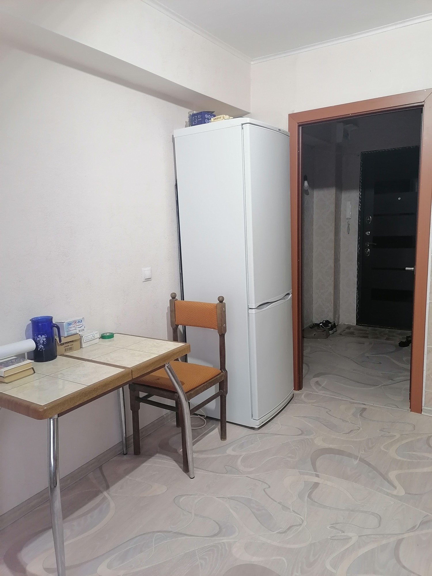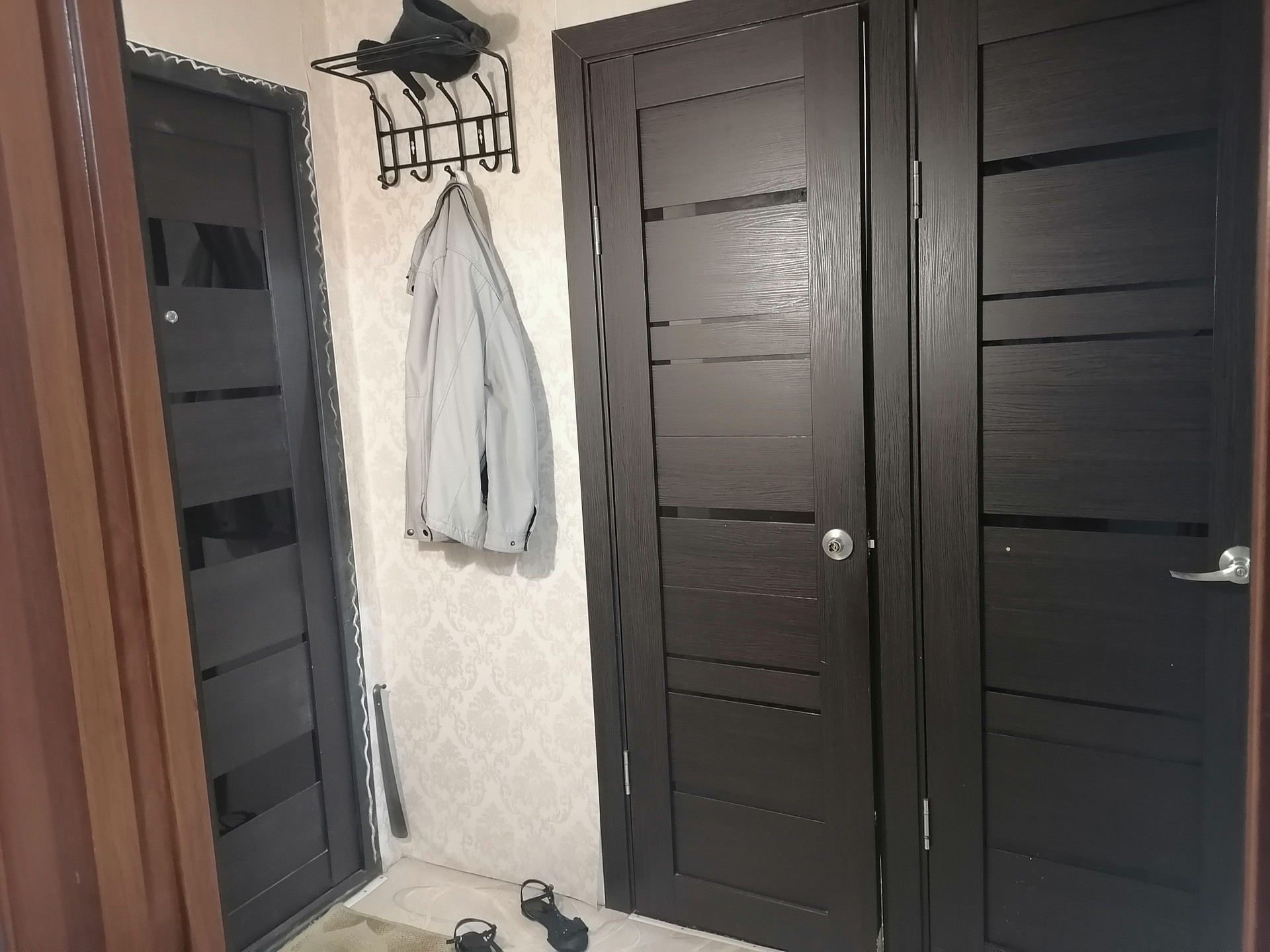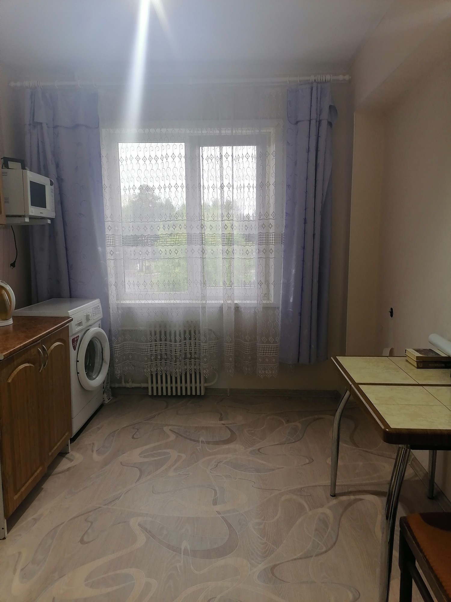 Окна евро, пол новый линолеум, м/двери новые, потолки выравнены побелка, ванная кафель, сантехника новая, балкон застеклен деревянными рамами, входная дверь евро.