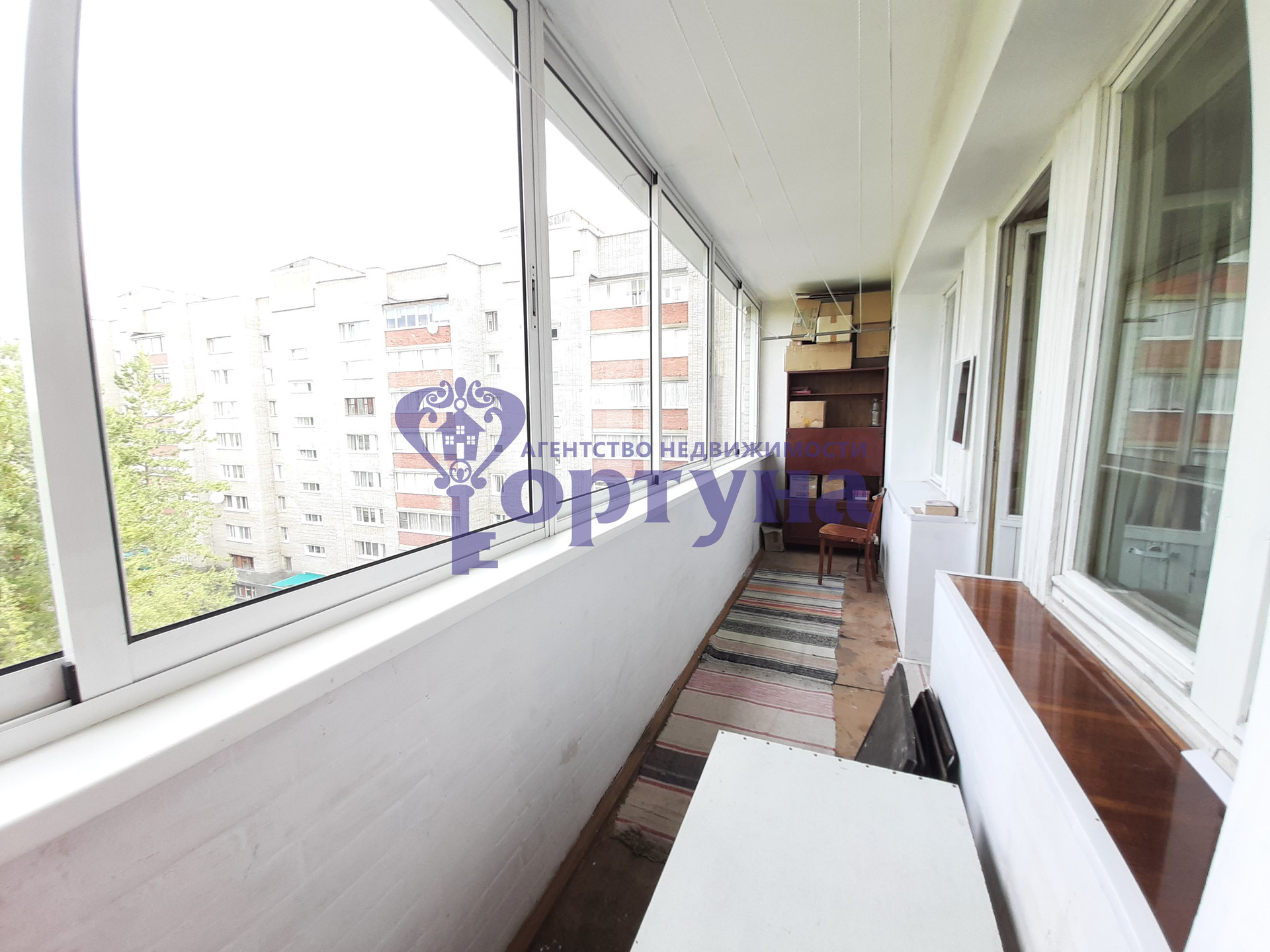 Лоджия застеклена алюминиевыми рамами.