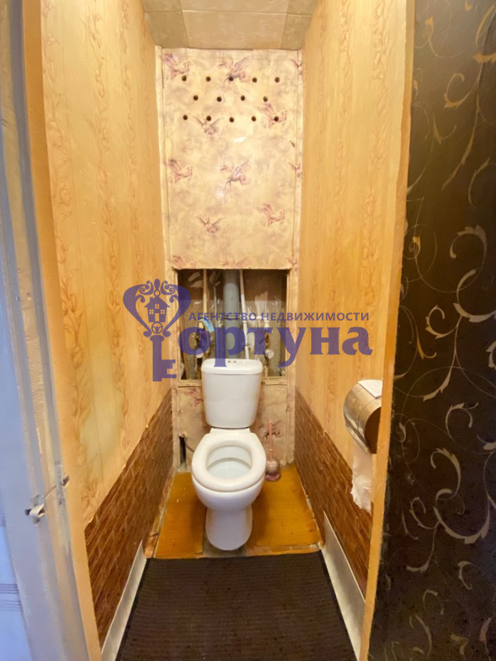 Туалет - обои, ванная комната обшита панелями.