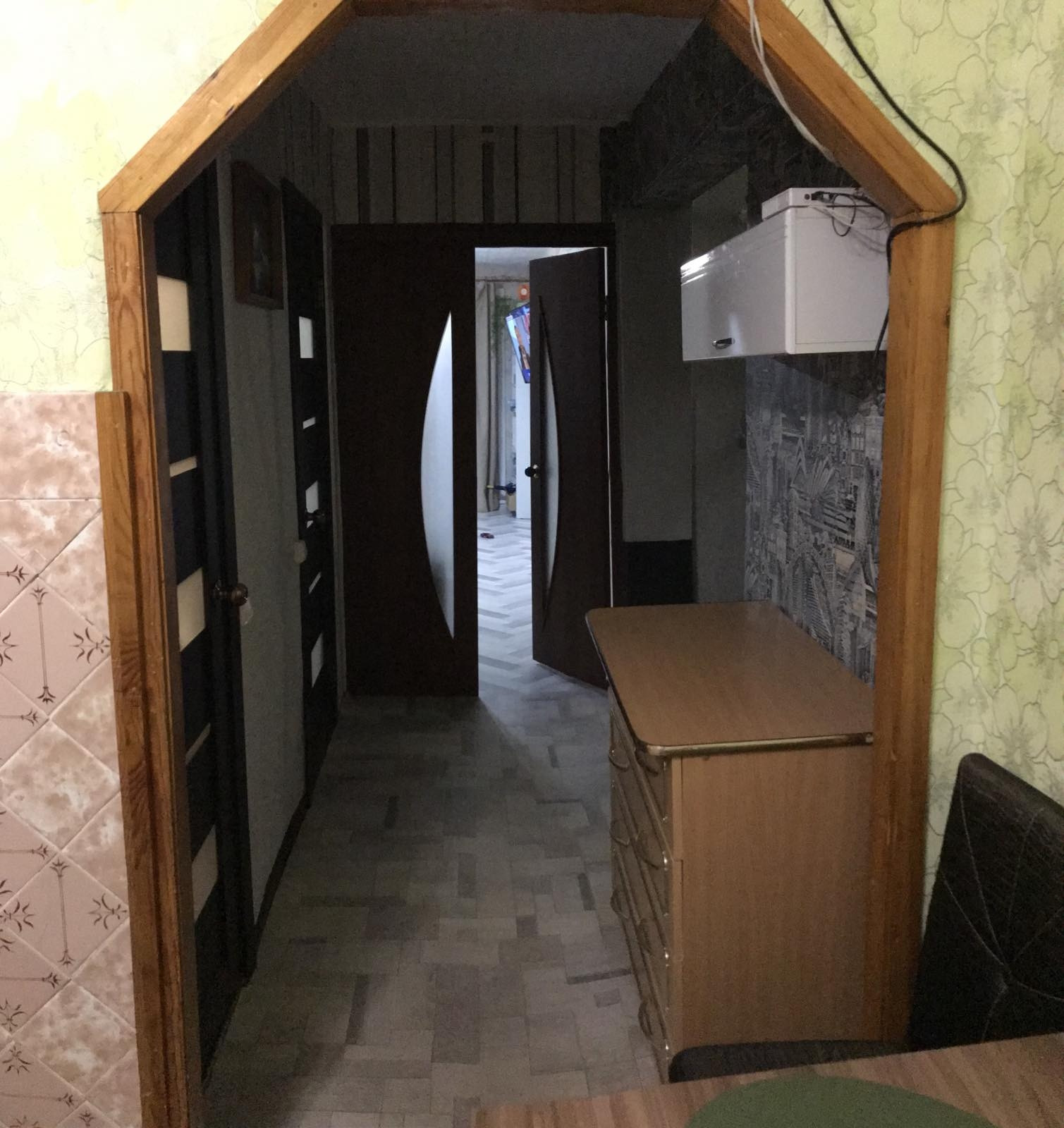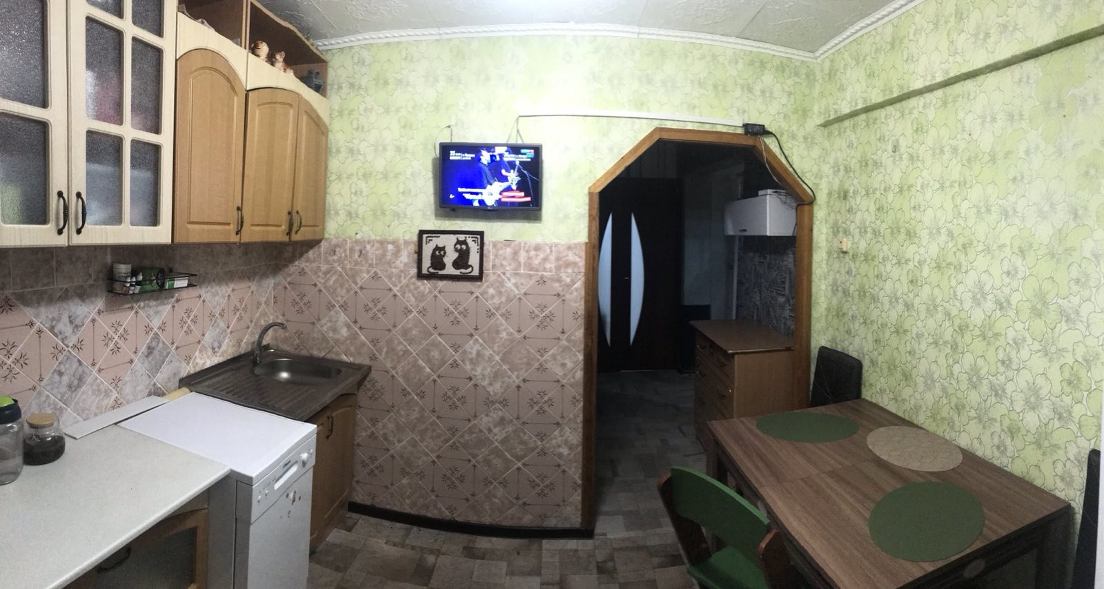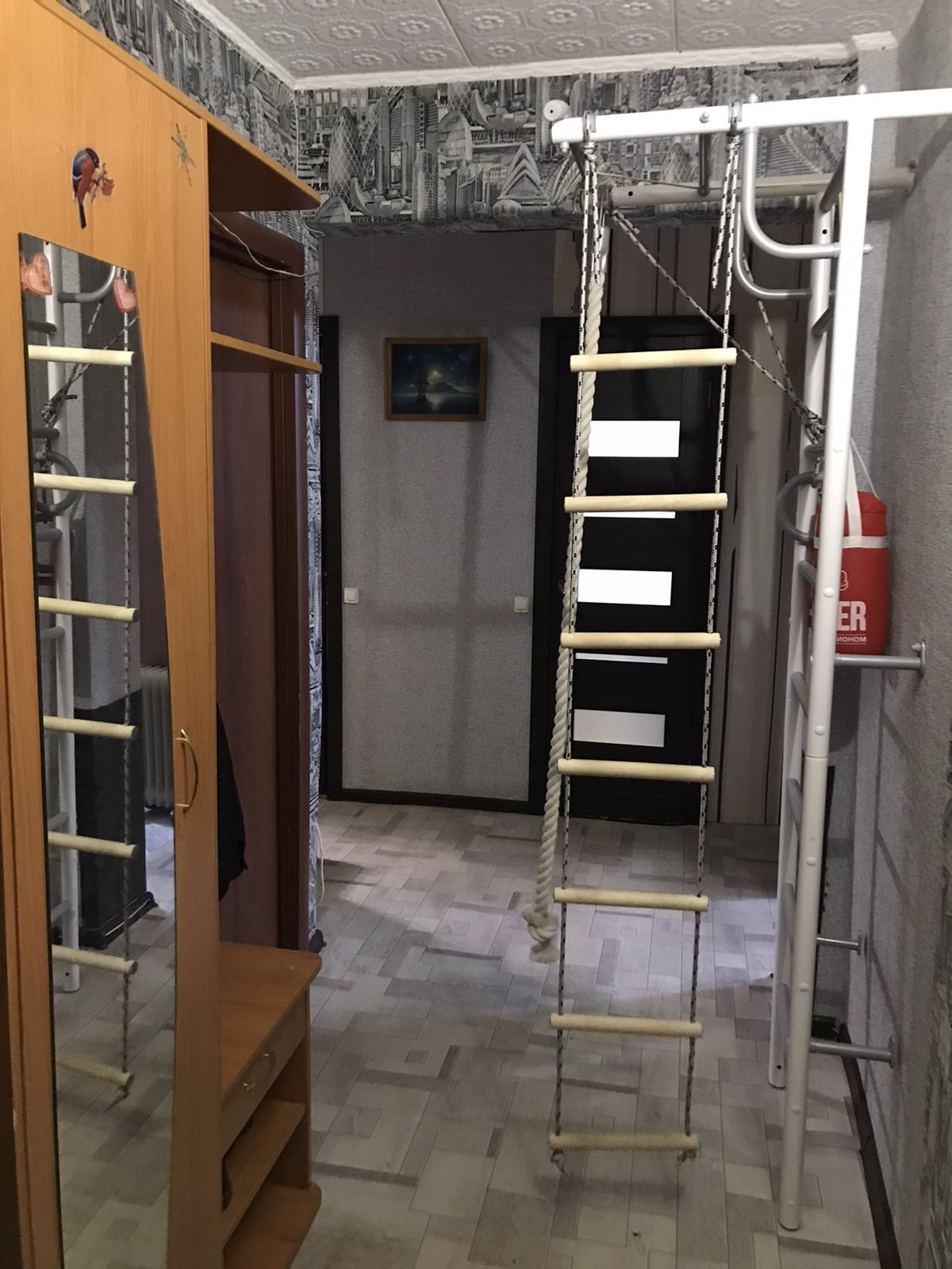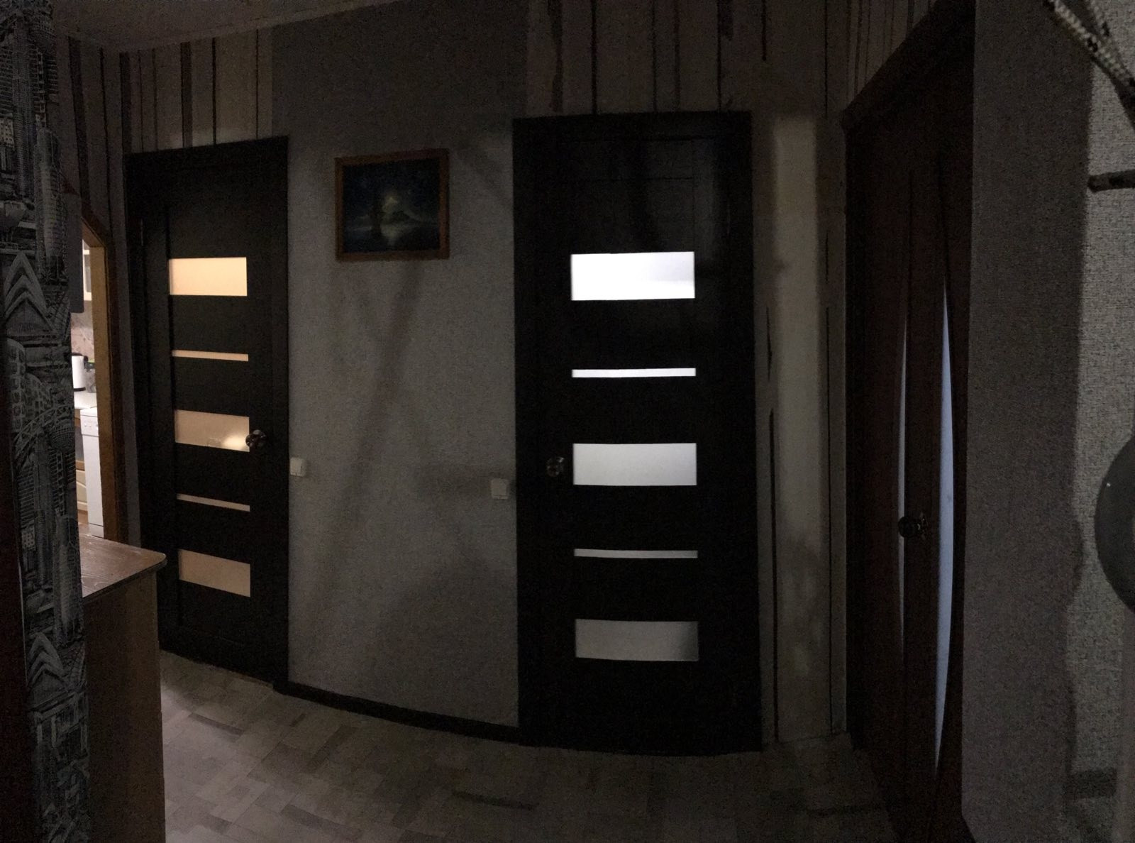 Окна евро, пол линолеум, 1 натяжной потолок в зале, м/двери нового образца, ванная комната стеновые панели.