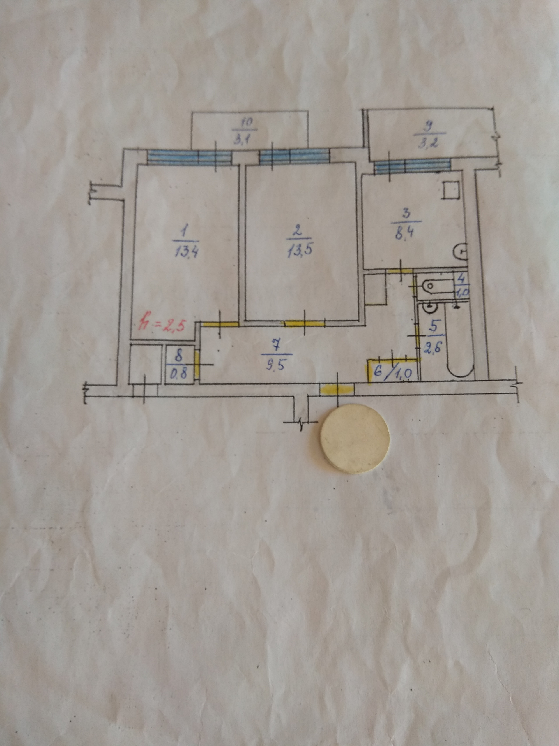 Высота потолков 2.5 м