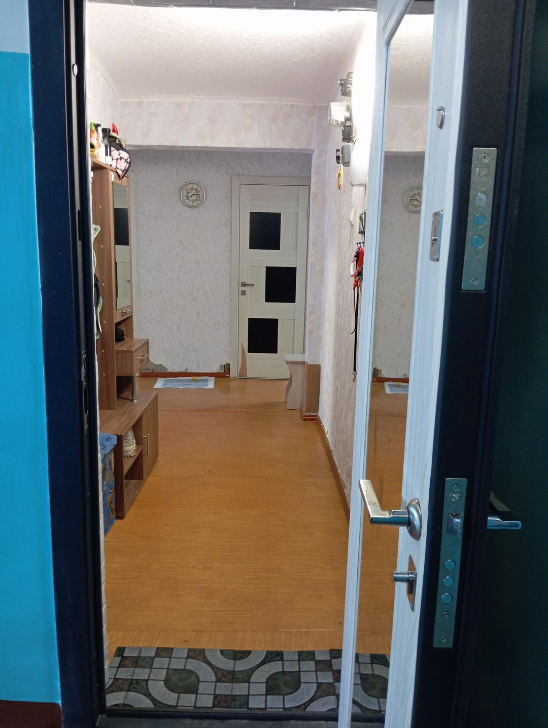 Входная дверь нового образца, пластиковые окна, межкомнатные двери.