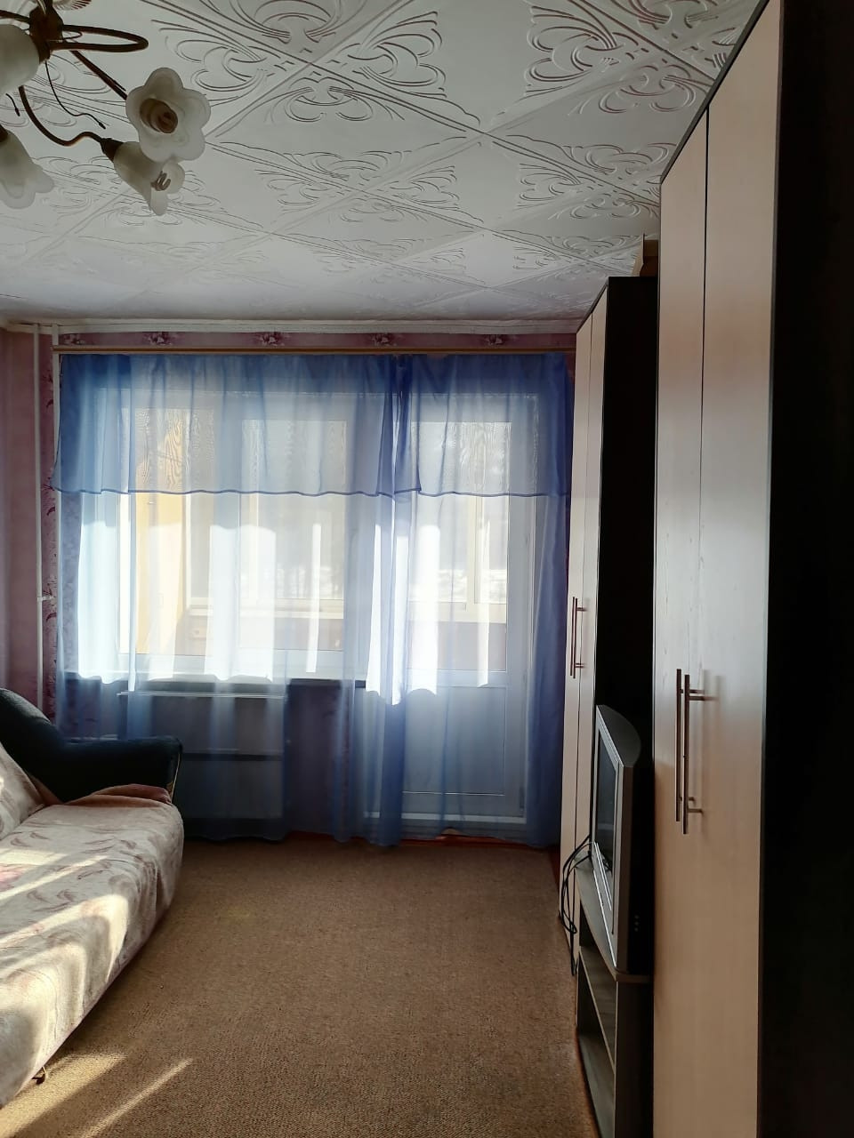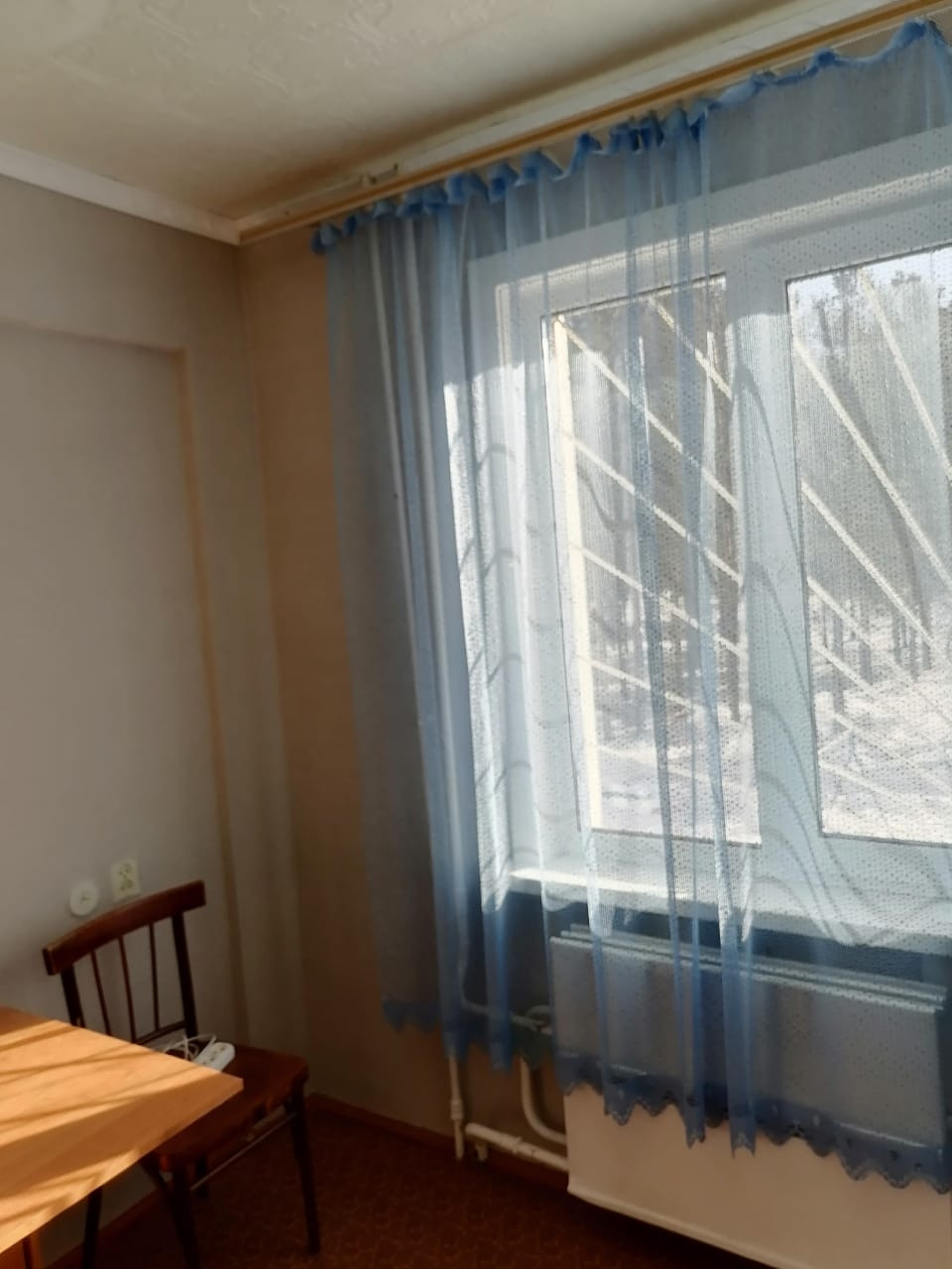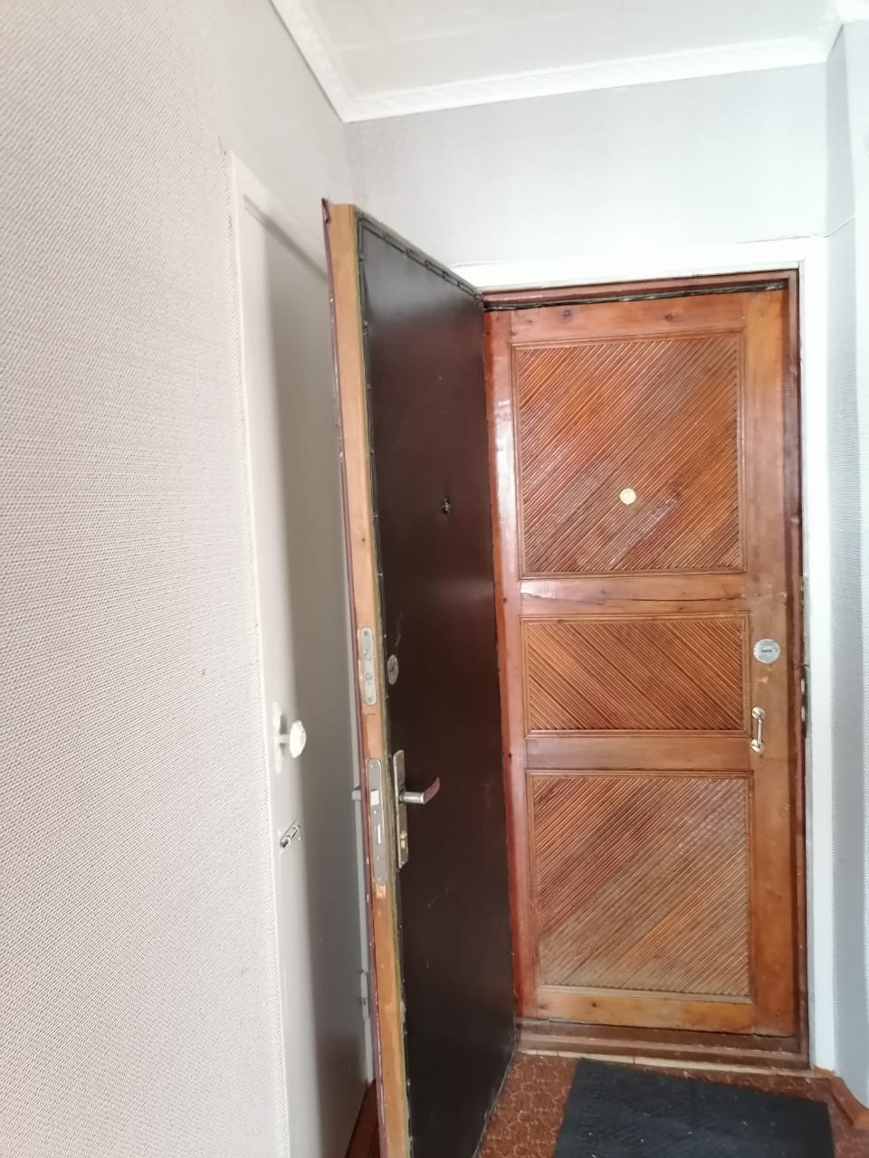 Окна пластиковые,  межкомнатные двери обычные,  входная дверь деревянная, на полу ленолиум. Квартира в обычном состоянии.