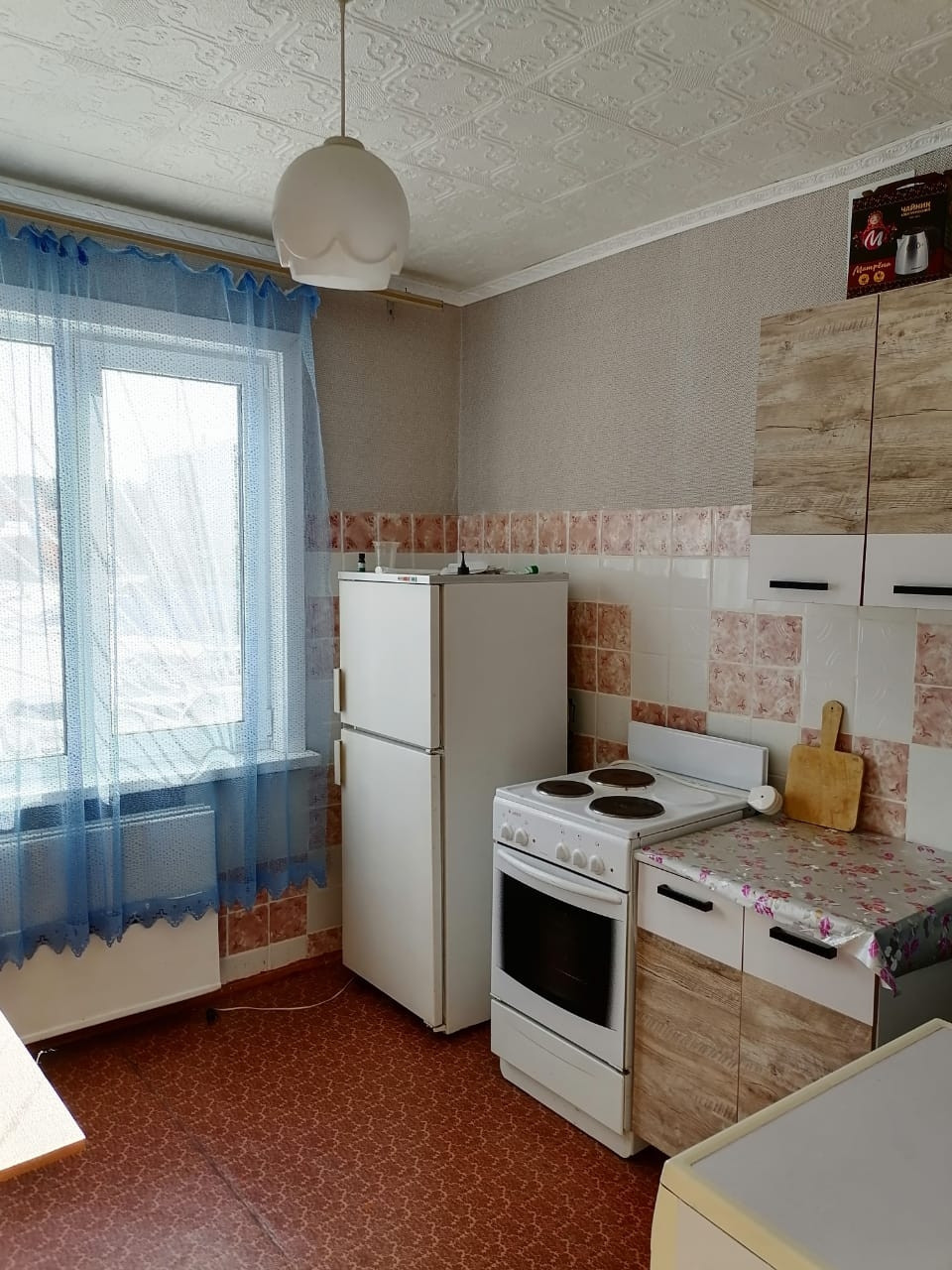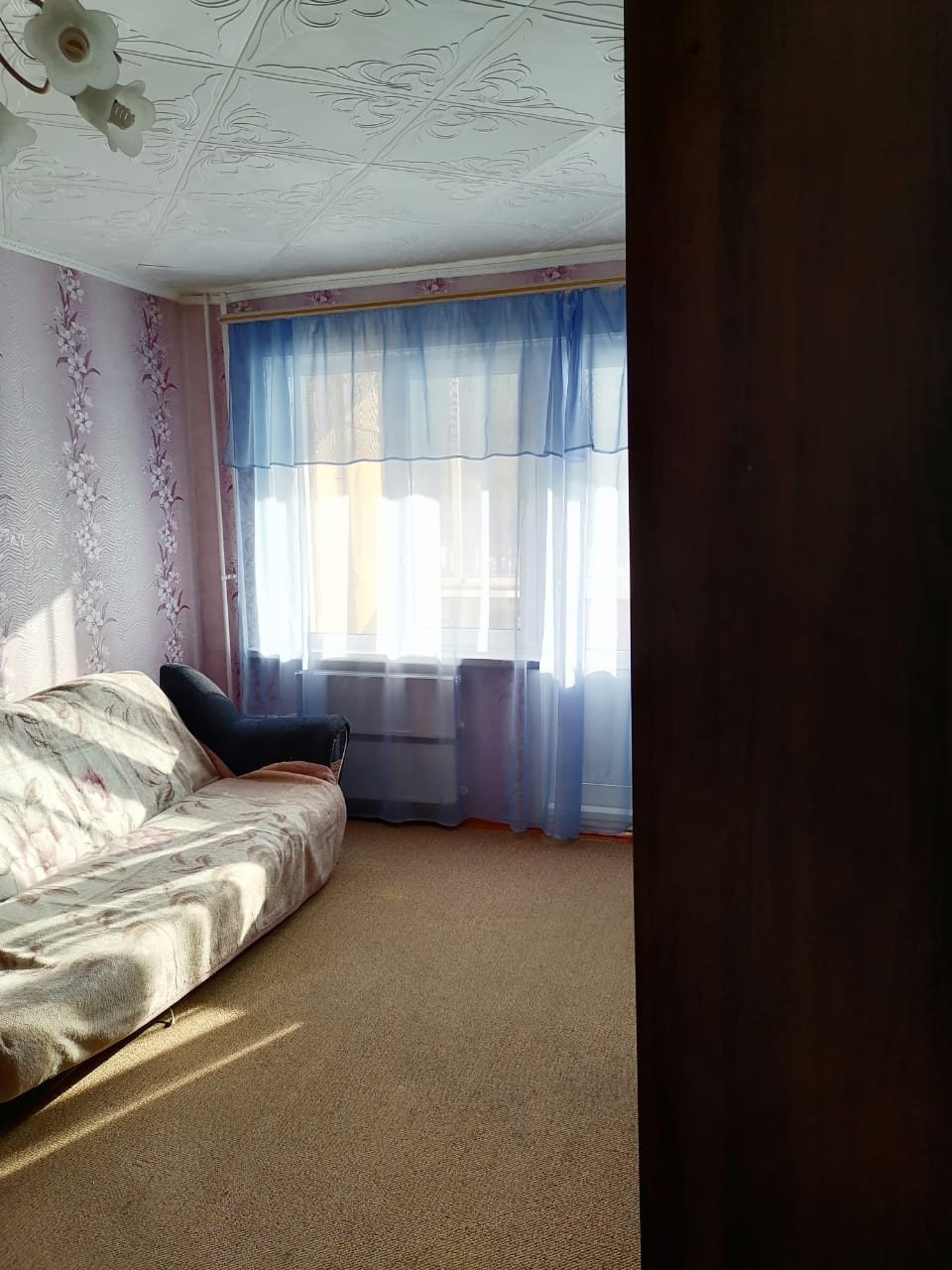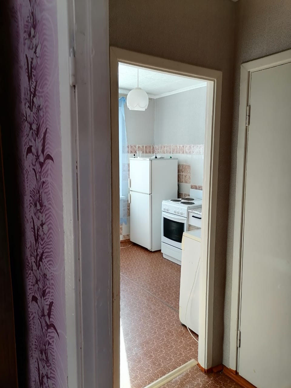 Окна пластиковые,  межкомнатные двери обычные,  входная дверь деревянная, на полу ленолиум. Квартира в обычном состоянии.
