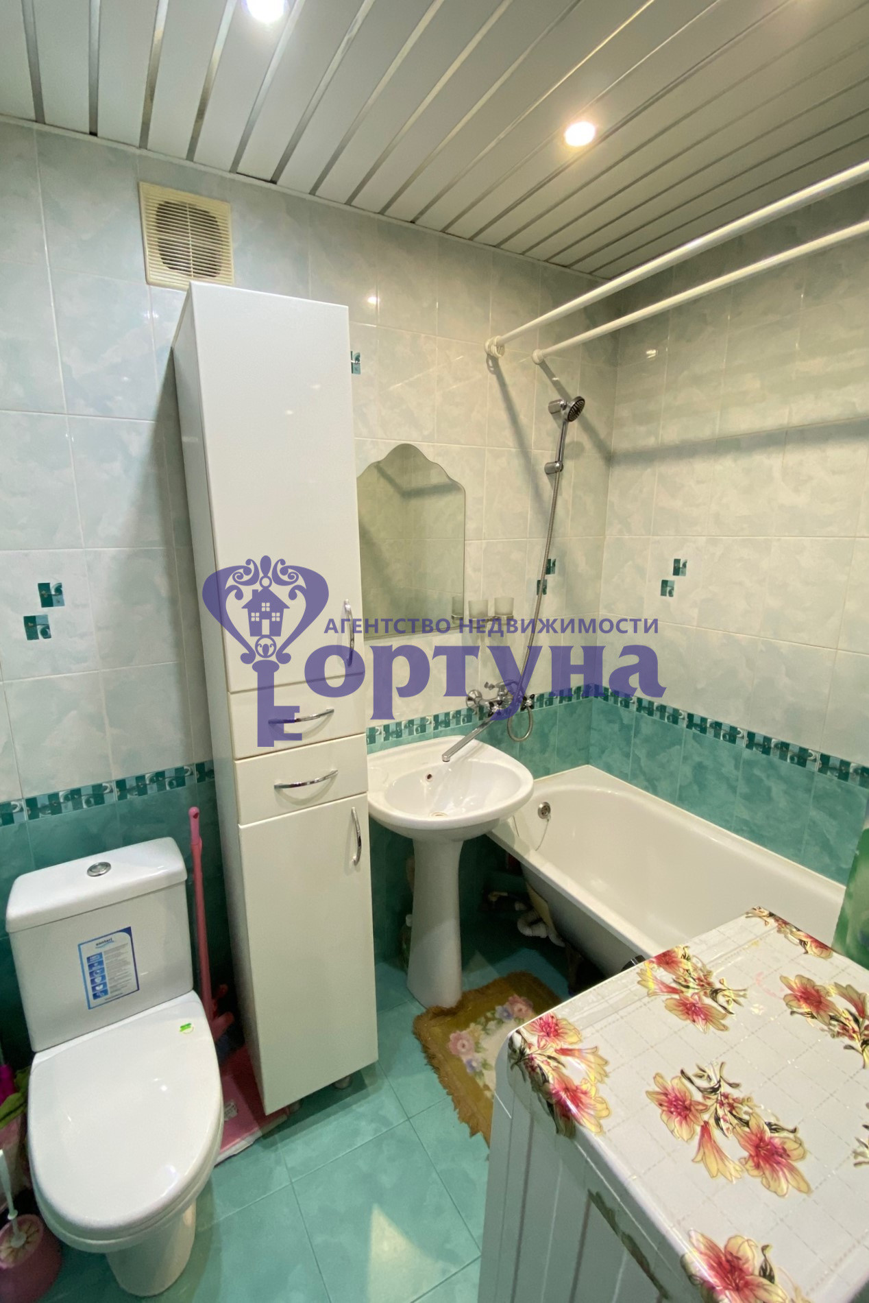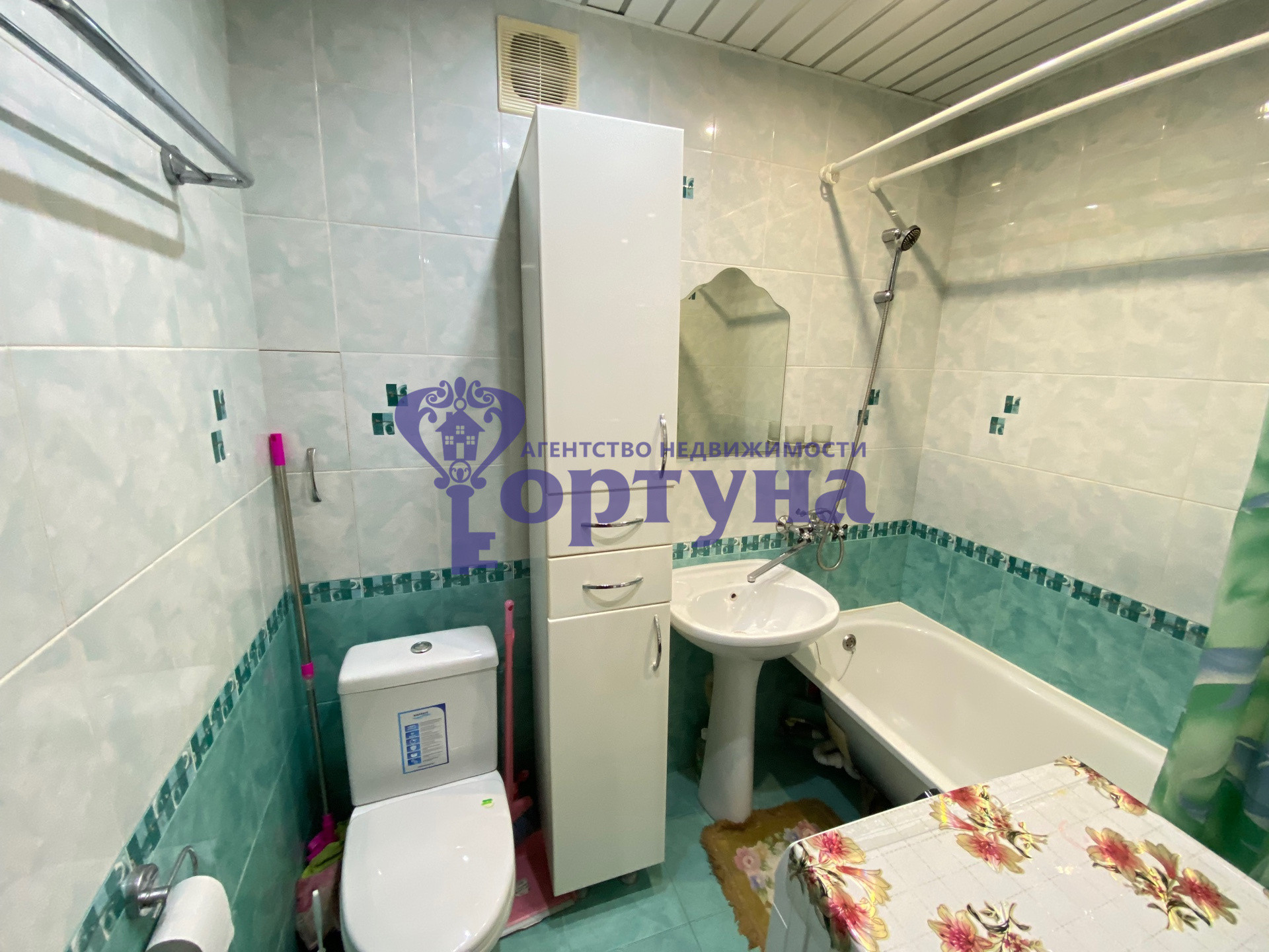 -Санузел совмещен ,отделан кафелем ;
