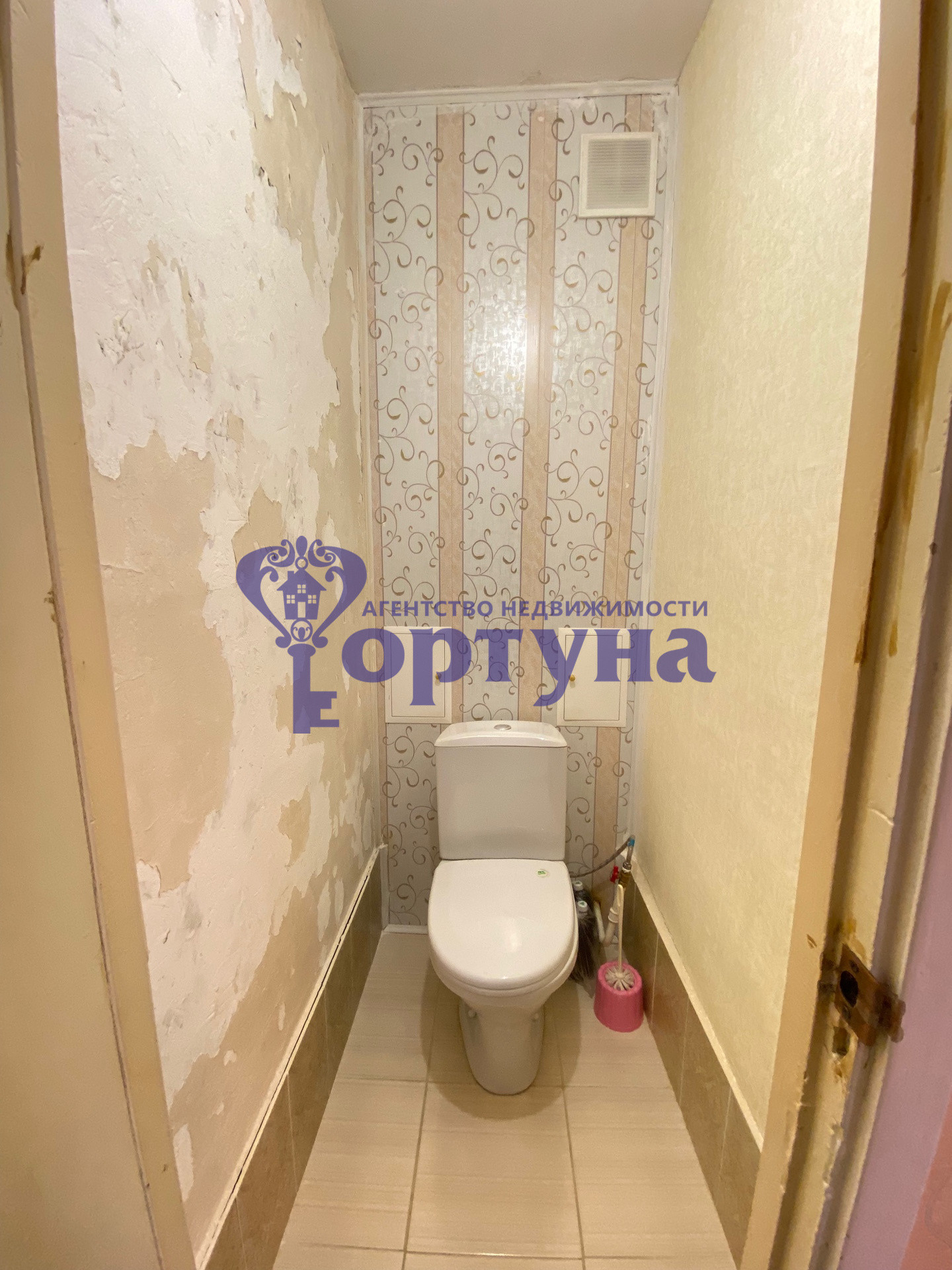 Paздeльный cанузел, ванная отделана современным кафелем, туалет панелями.