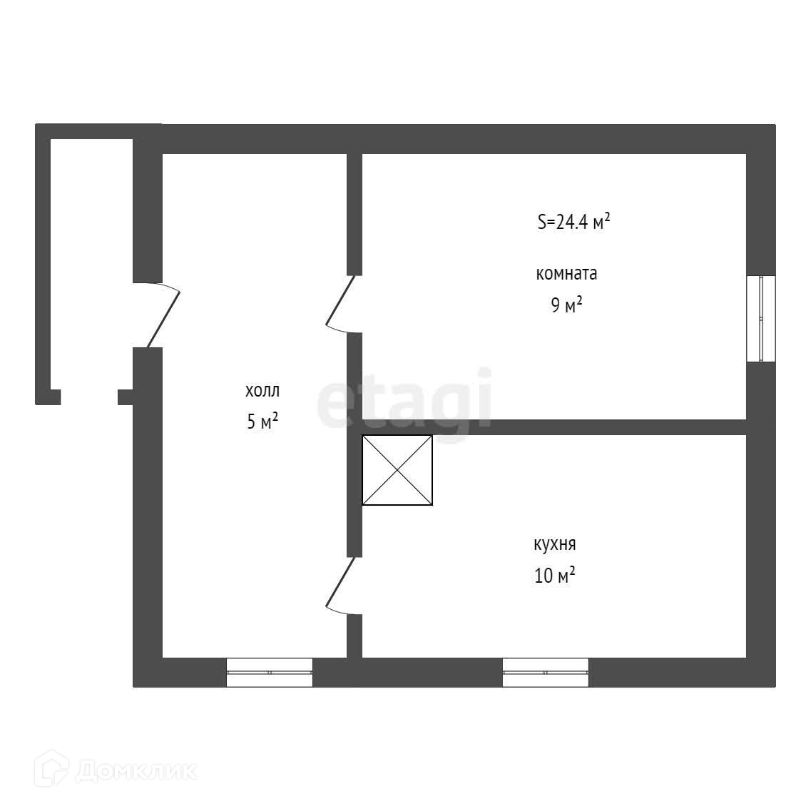 Общая площадь 24.4 м2