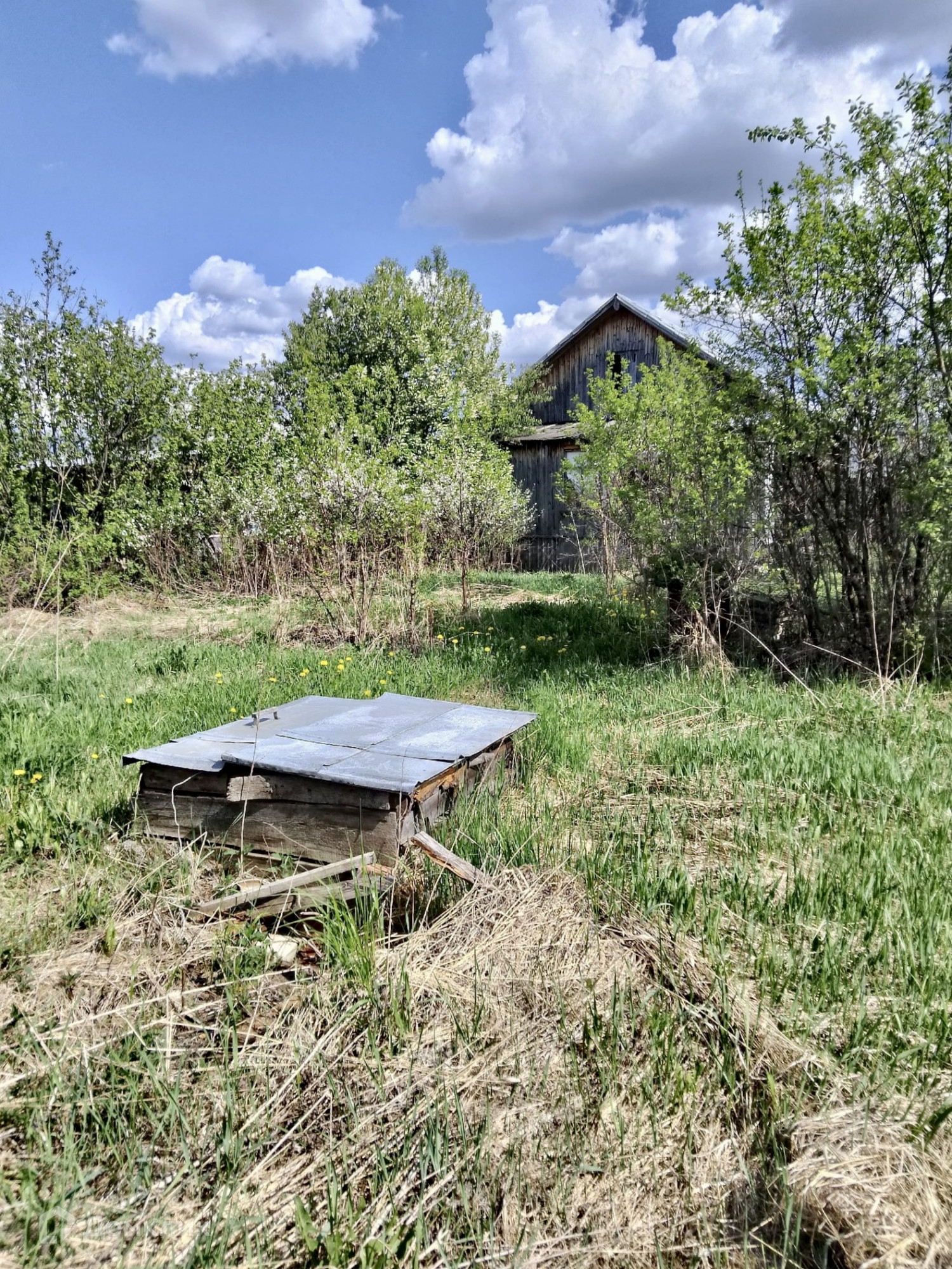На участке находятся дачный домик, заготовка для летней кухни/бани, туалет, колодец. Очень положительные соседи рядом
