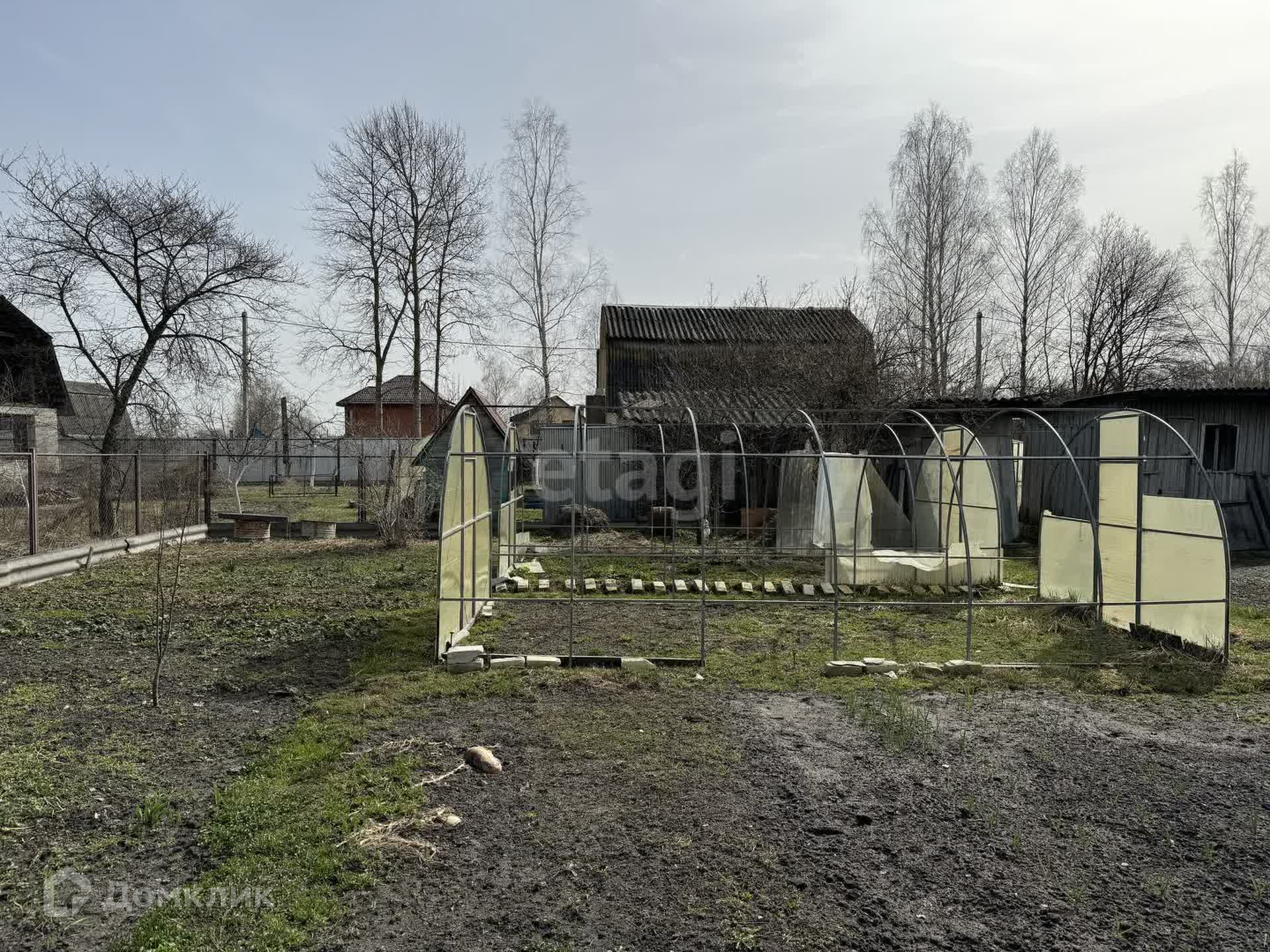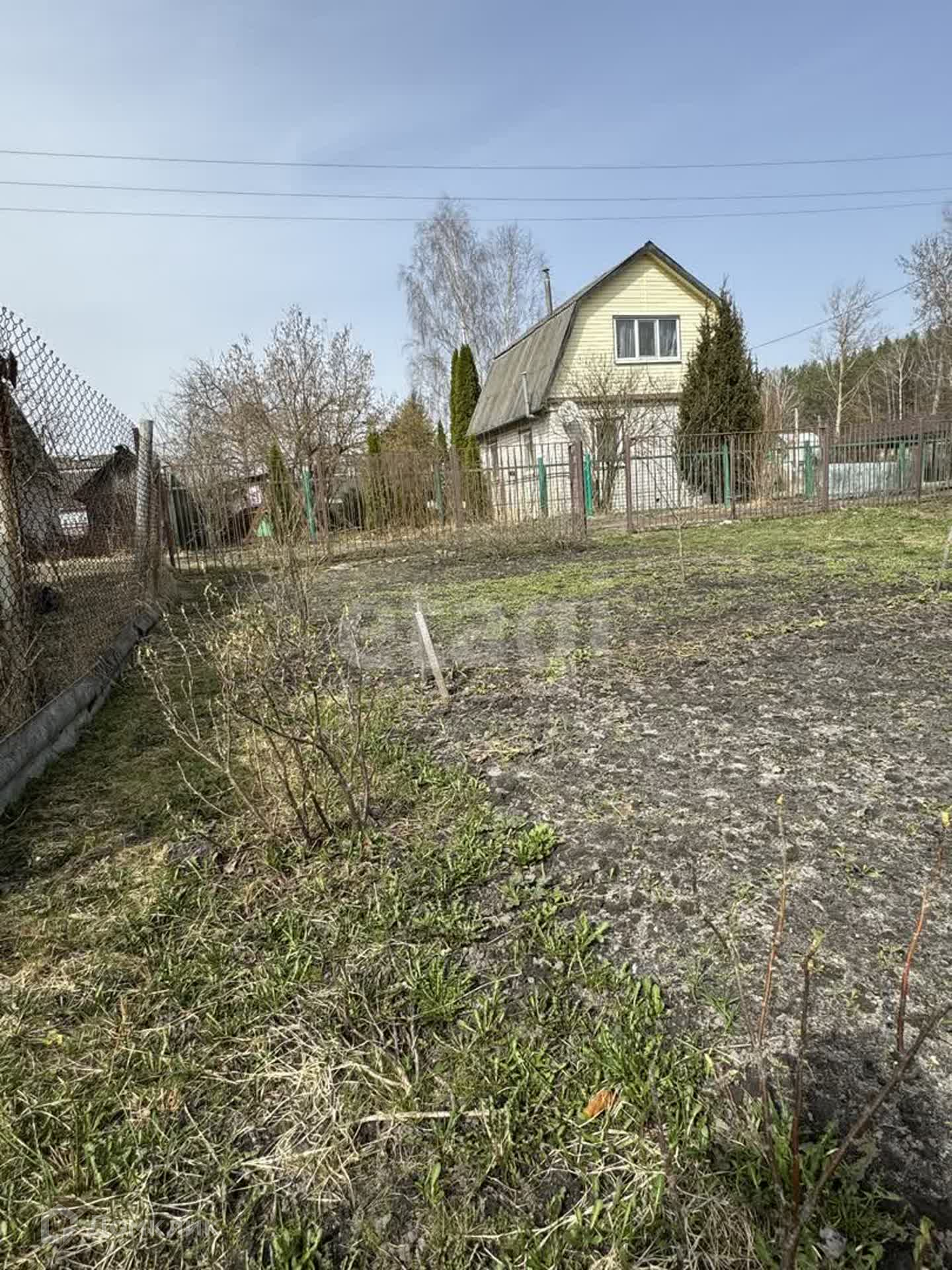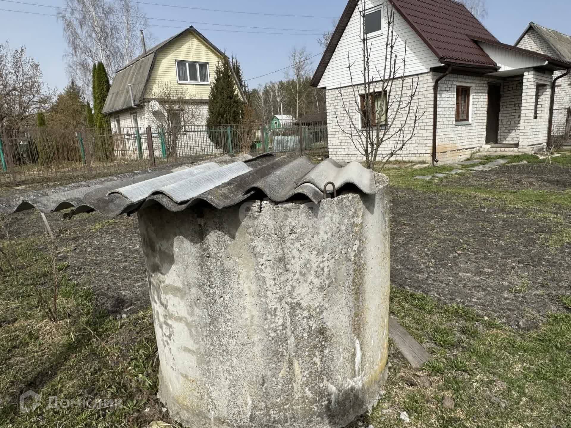 На участке колодец с питьевой водой, каркасы для двух теплиц, плодовые деревья и кустарники (красная и черная смородина, малина, клубника, яблони).