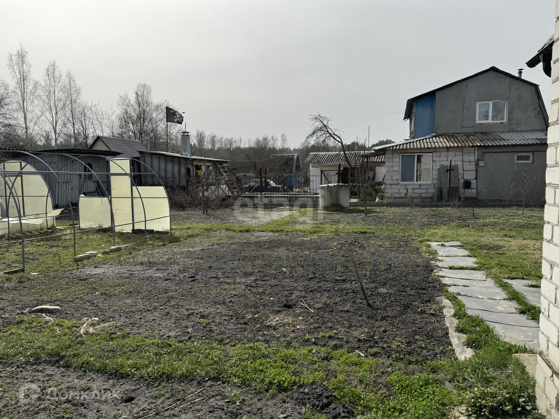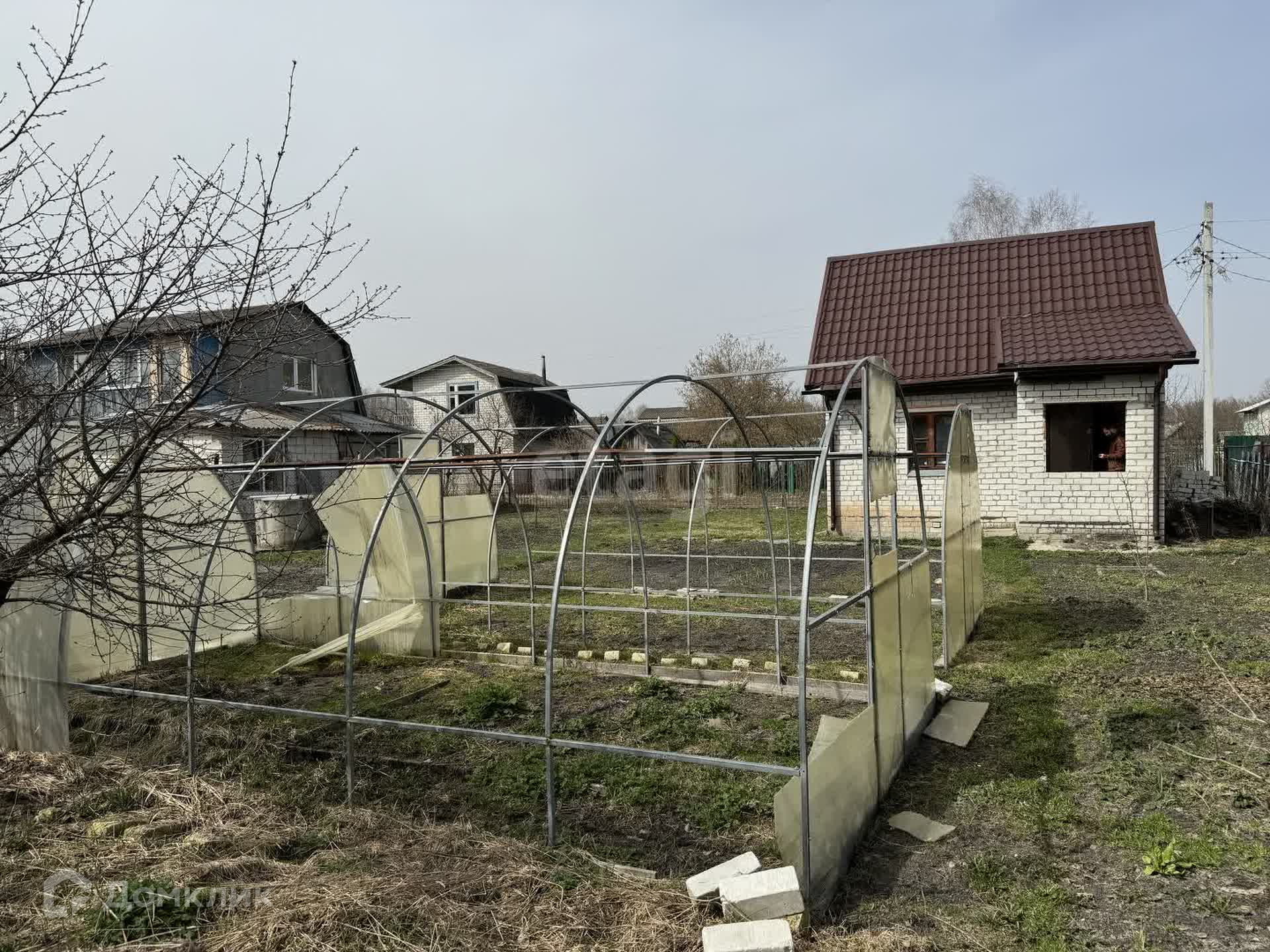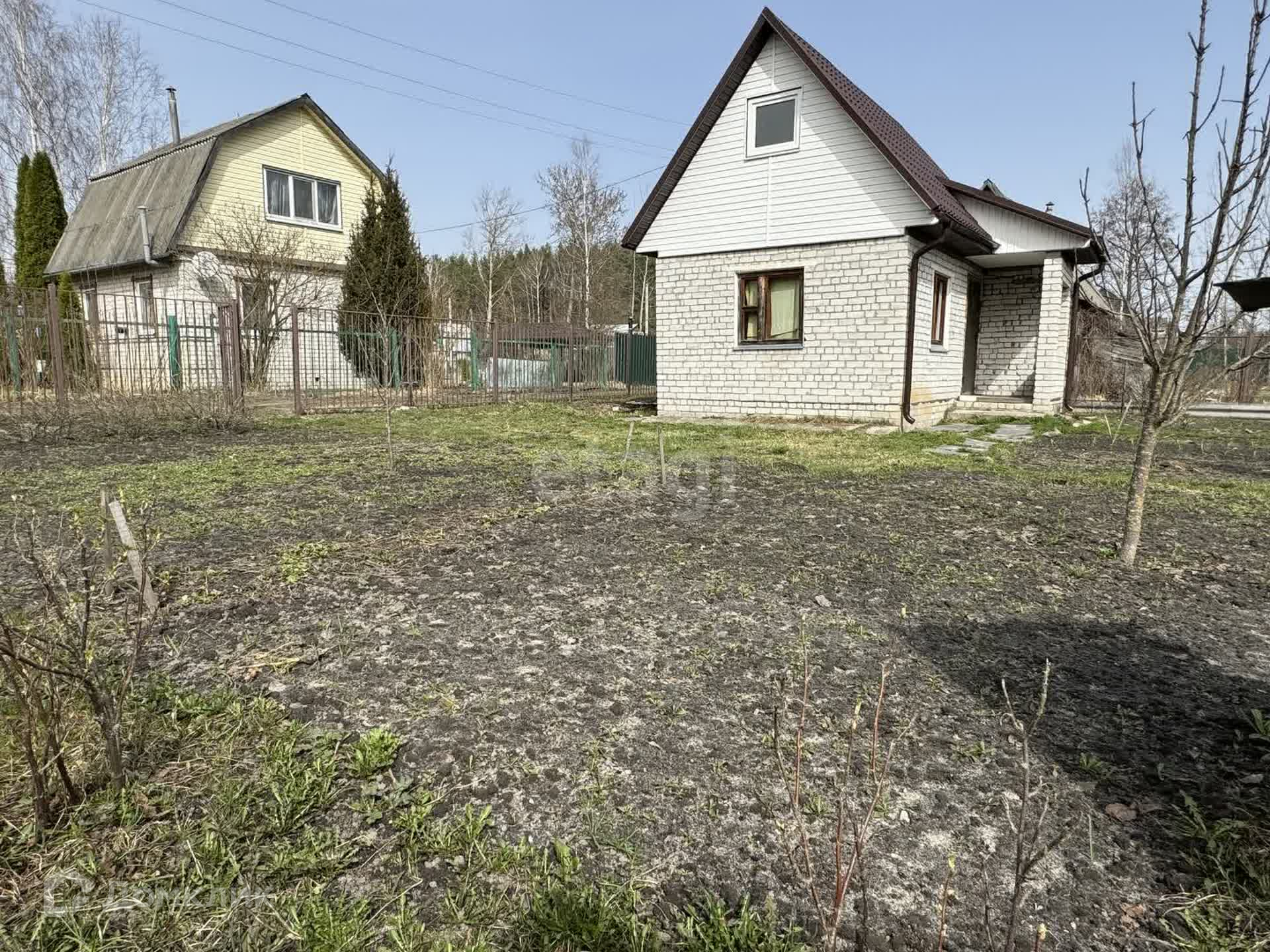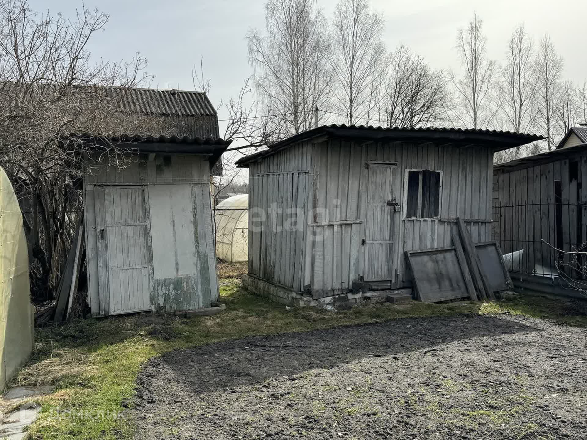 На участке колодец с питьевой водой, каркасы для двух теплиц, плодовые деревья и кустарники (красная и черная смородина, малина, клубника, яблони).