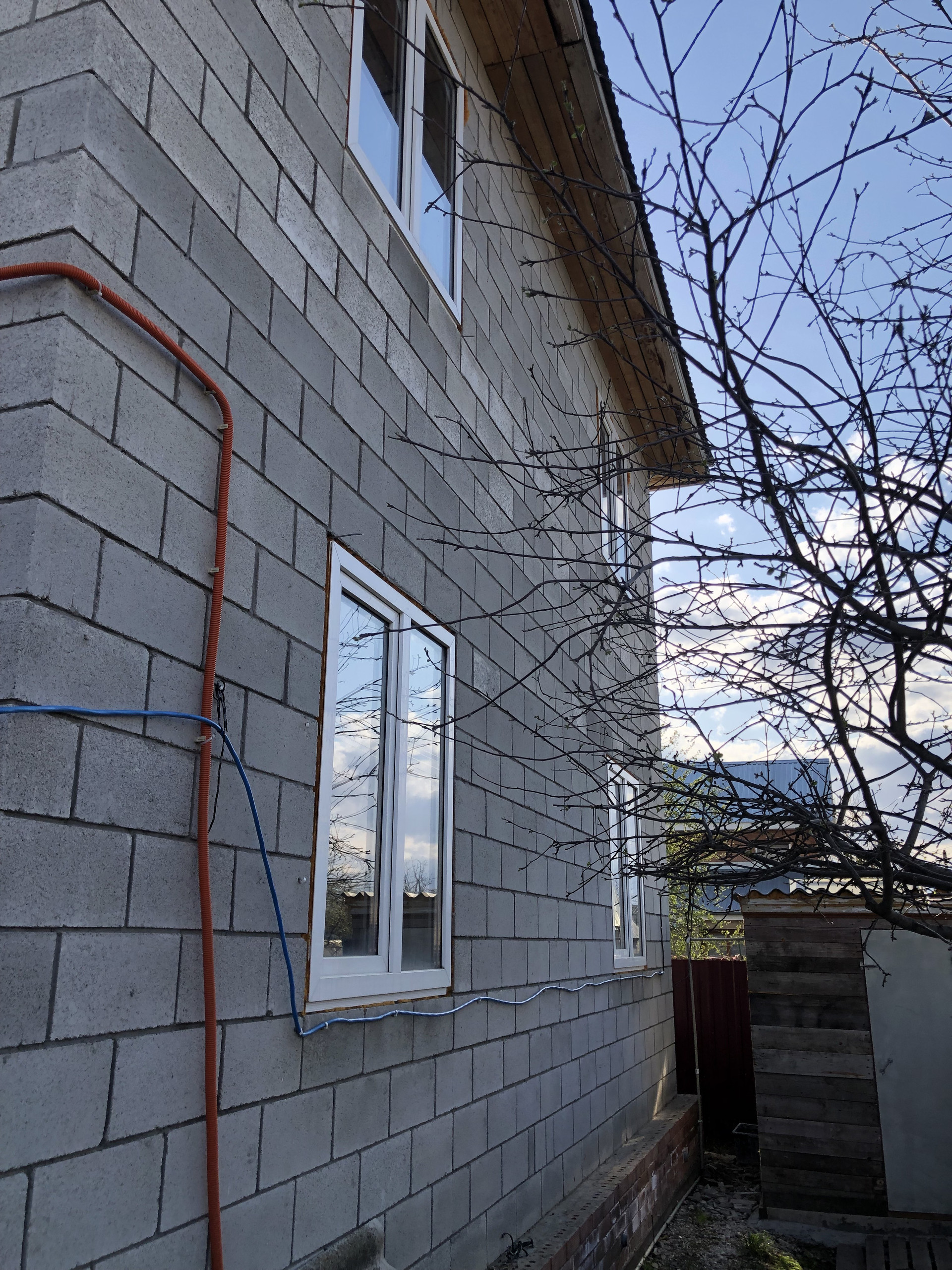 Дом с черновой  отделкой, стоят германские окна   и дорогая дверь !!!