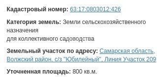 Продаётся земельный участок 8 сот. Земля сельскохозяйственного назначения для коллективного садоводства находящаяся по адресу: Самарская область, Волжский район, с/з Юбилейный (63:17:0801004:3002) |