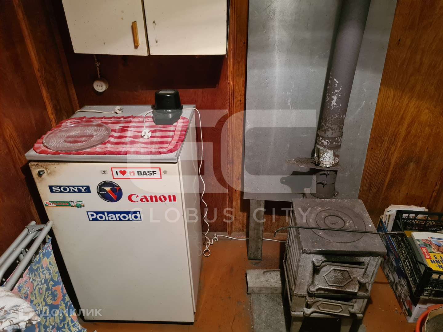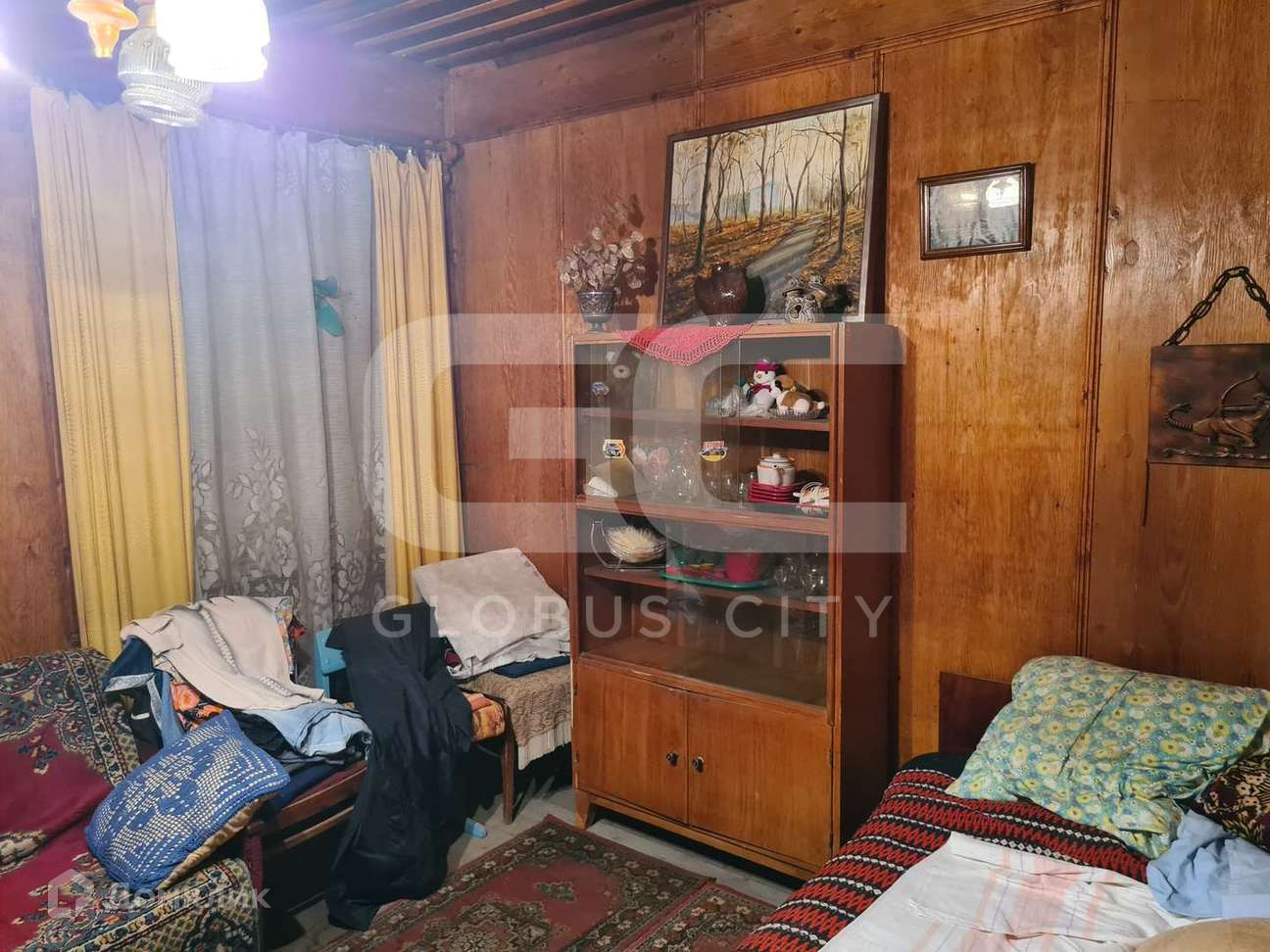 На первом этаже располагаются комнаты для приготовления и приёма пищи (веранда-кухня), комната с печным отоплением, спальная комната и кладовая под хранение хозяйственных принадлежностей. Так же имеется глубокий сухой подвал.