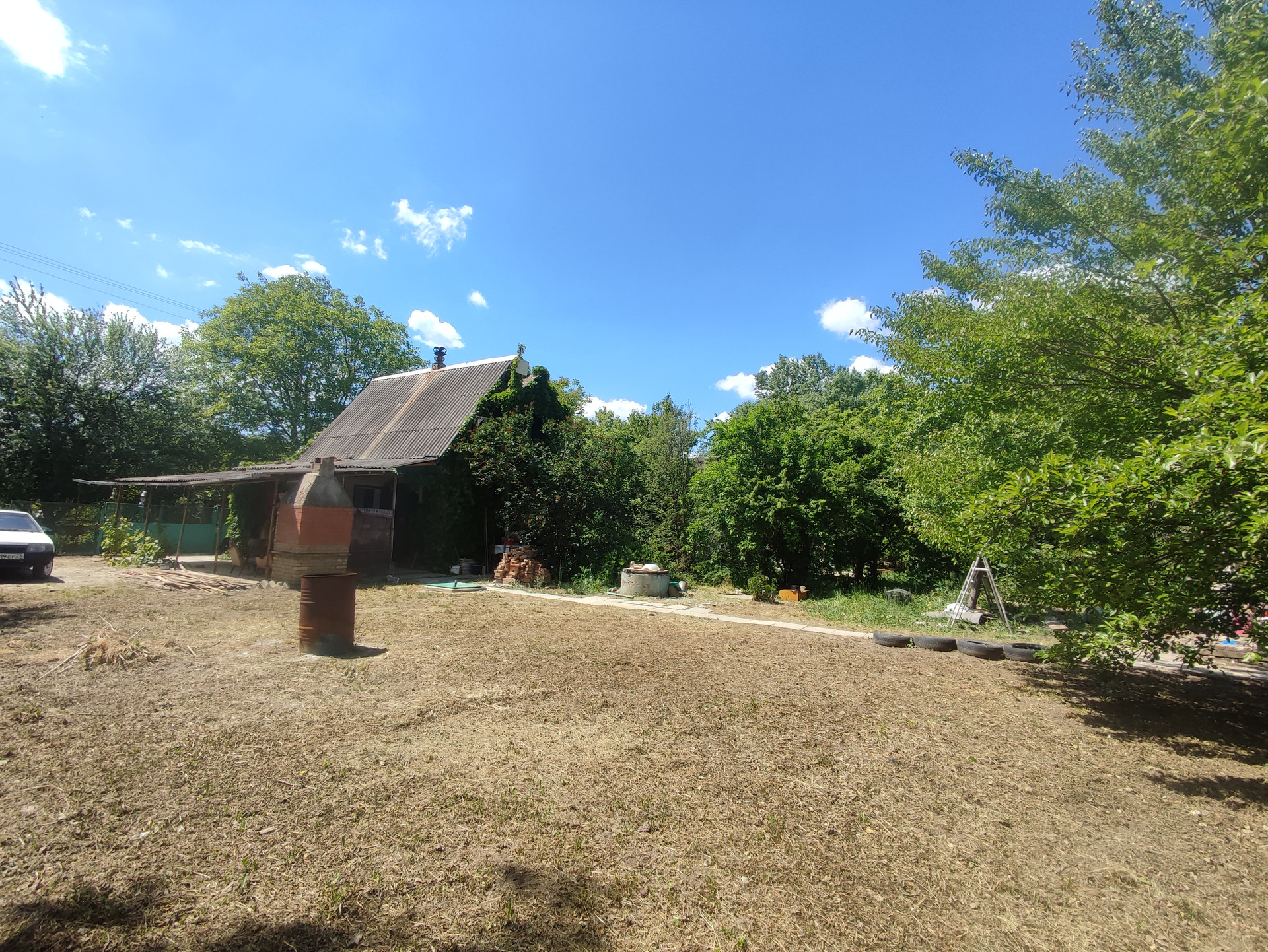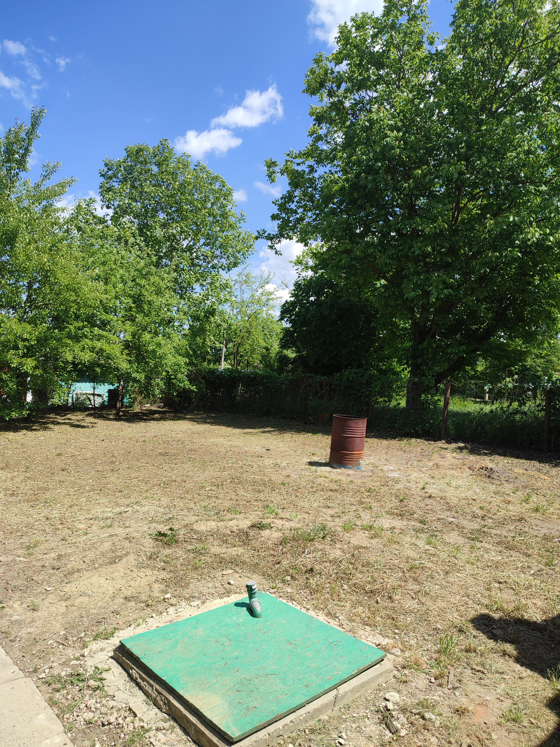 На участке своя скважина и колодец. Участок квадратной формы. Широкий фасад. 2 заезда под автомобиль. Навес с мангальной зоной.