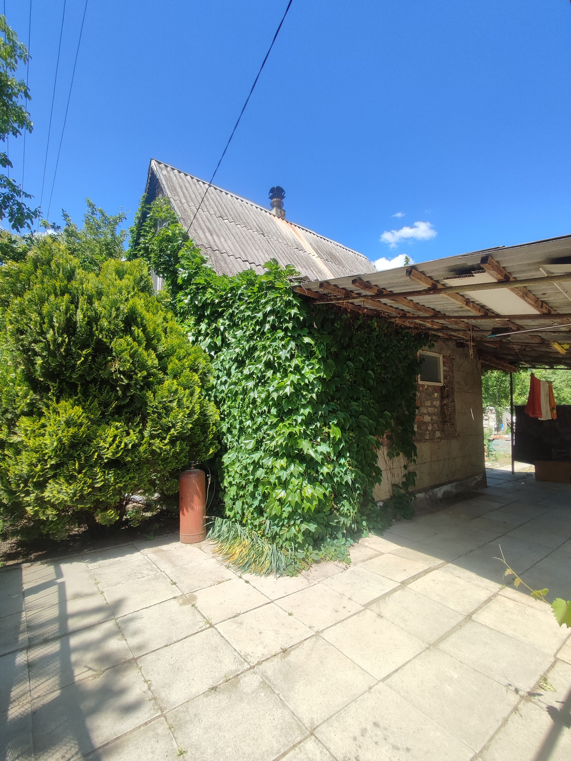 На участке растет яблоня, абрикос, груша.