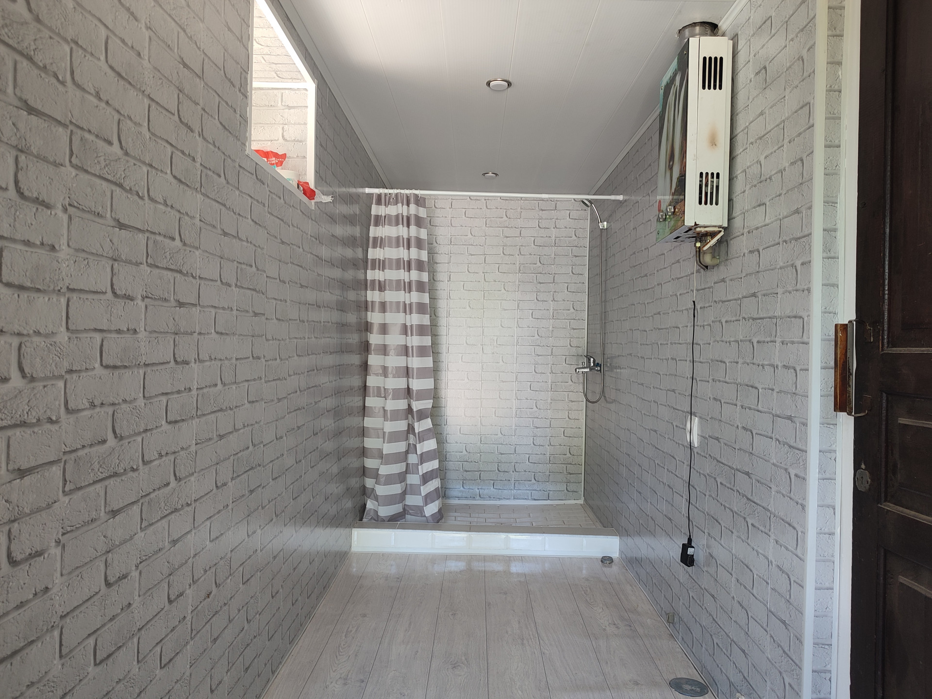 Вода подключена. Можно подключить газовый баллон и готовить на газу ( выход есть).