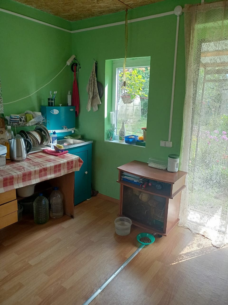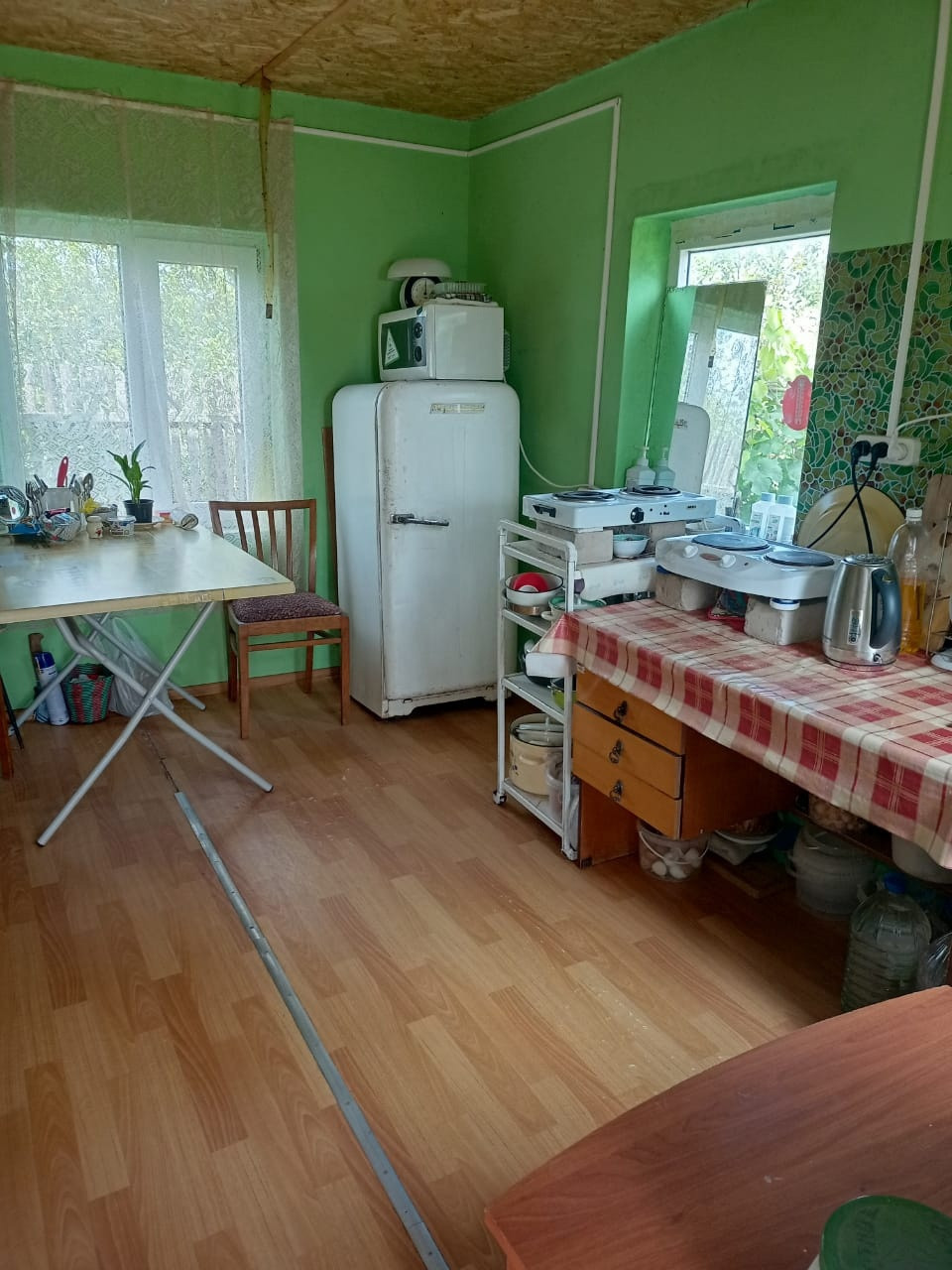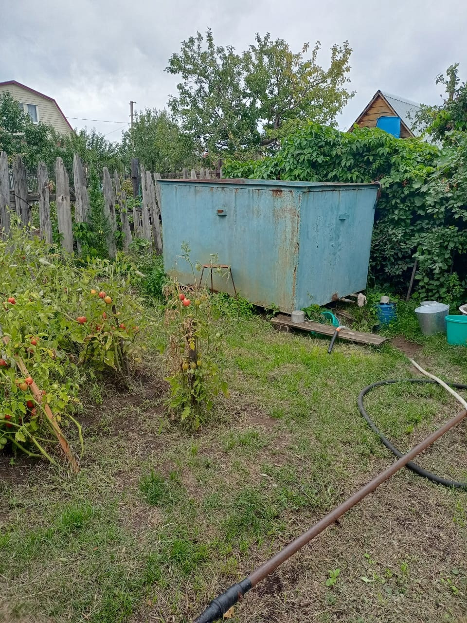 На участке: душ, туалет, курятник с вольером, парник, теплица, бак на 5 кубов воды, мангальная зона, парковочное место для автомобиля.