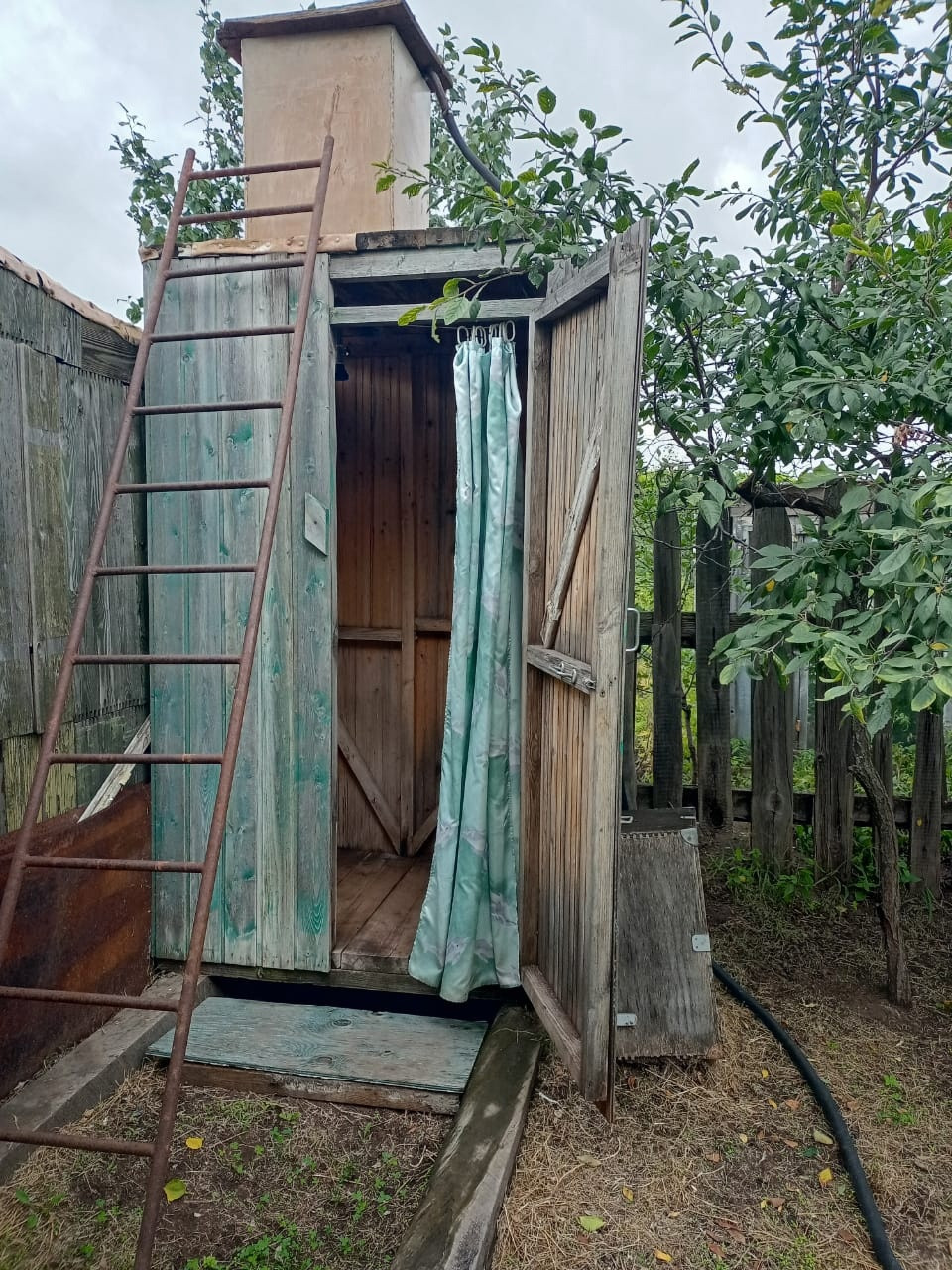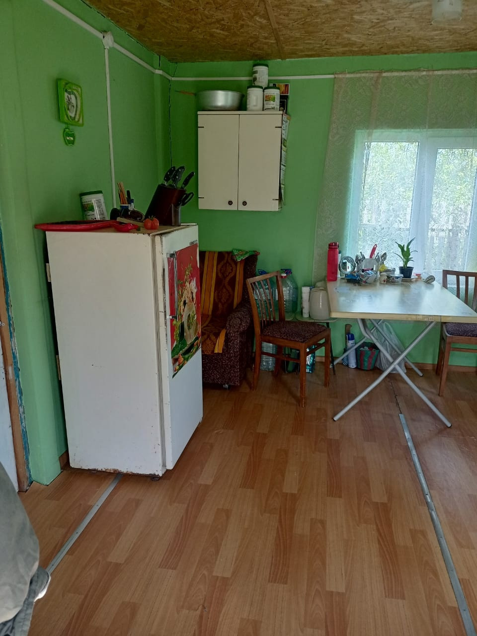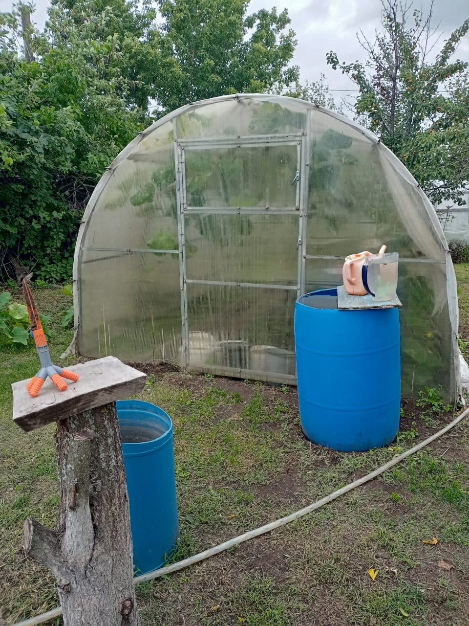 На участке: душ, туалет, курятник с вольером, парник, теплица, бак на 5 кубов воды, мангальная зона, парковочное место для автомобиля.