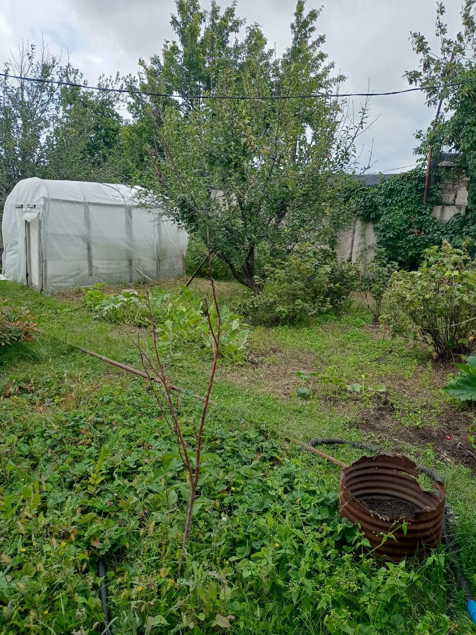 Много плодово-ягодных насаждений: 6 яблонь, 2 груши, 2 абрикоса, вишня, малина обычная и ремонтантная, смородина черная и красная, виноград 4 сорта (один из них кишмиш без косточек), крыжовник, жимолость, боярышник, орех. Все плодоносит.