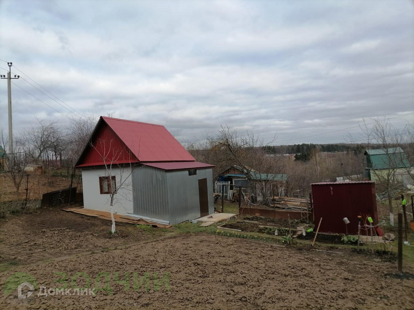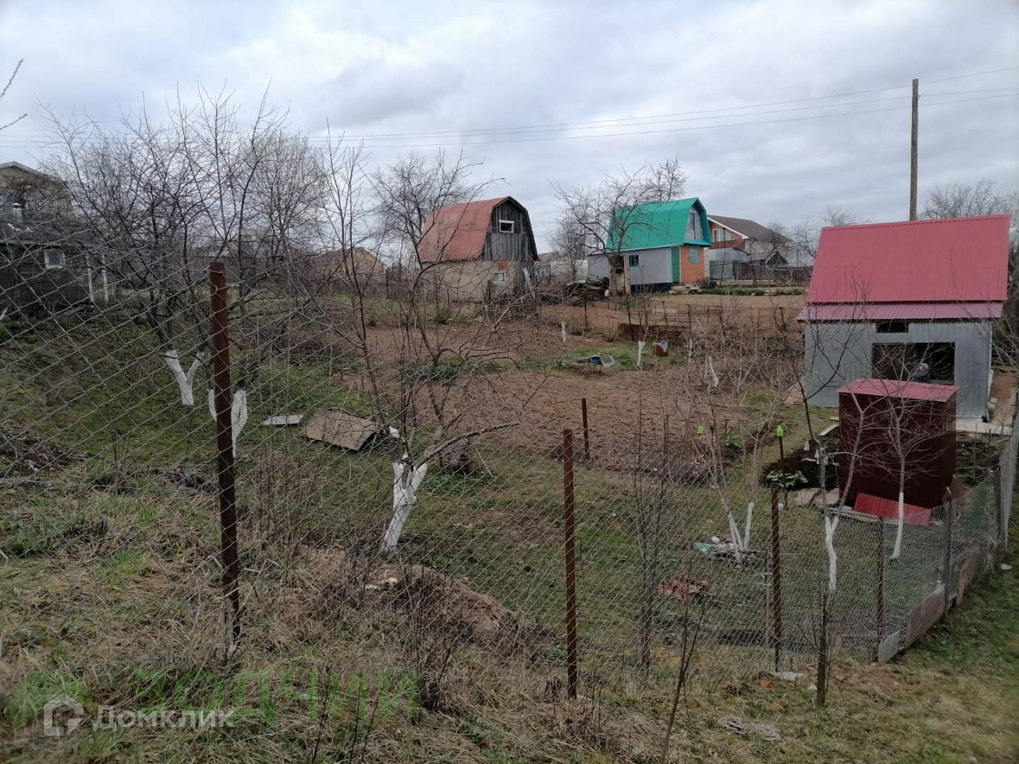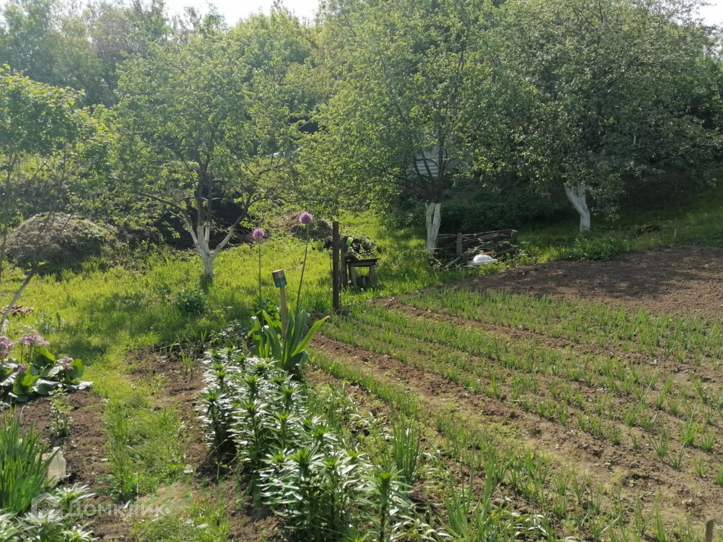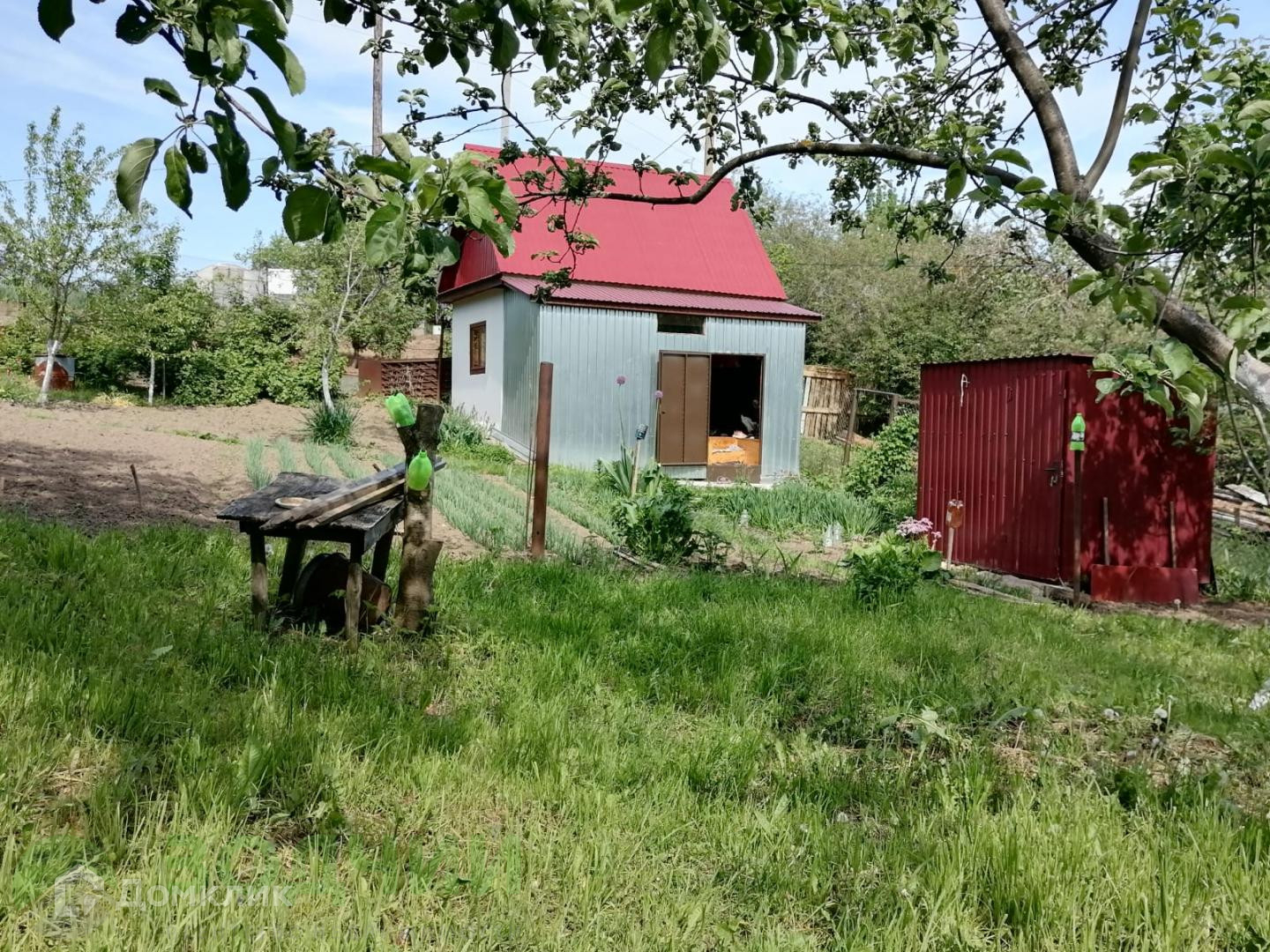 На аккуратно огороженной территории разместили все необходимое: небольшой дом, площадью 18,6 м2, сарай, яблони, а также остальные насаждения.