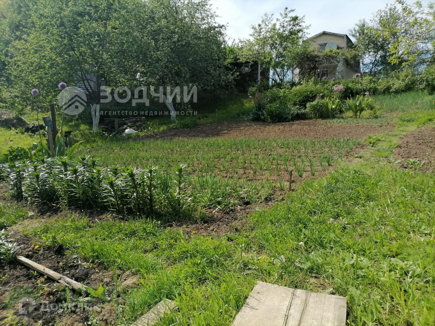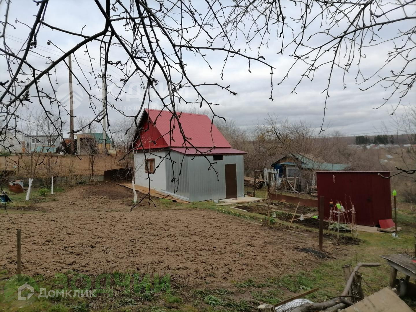 На аккуратно огороженной территории разместили все необходимое: небольшой дом, площадью 18,6 м2, сарай, яблони, а также остальные насаждения.