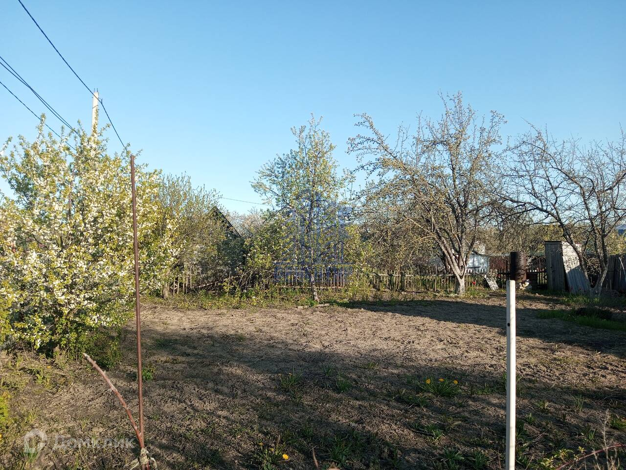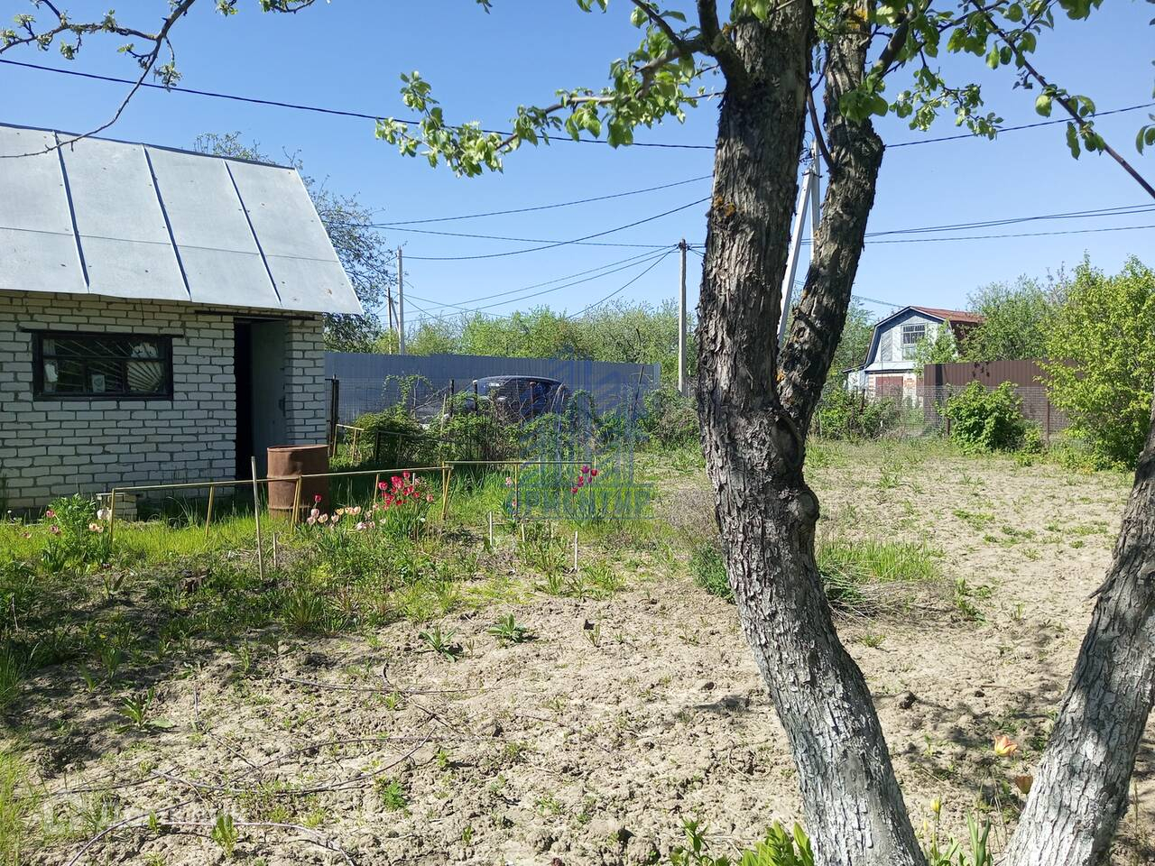 Участок ухоженный, в прошлом году пахали. На участке растут яблоня, груша, вишня, слива, смородина, крыжовник.