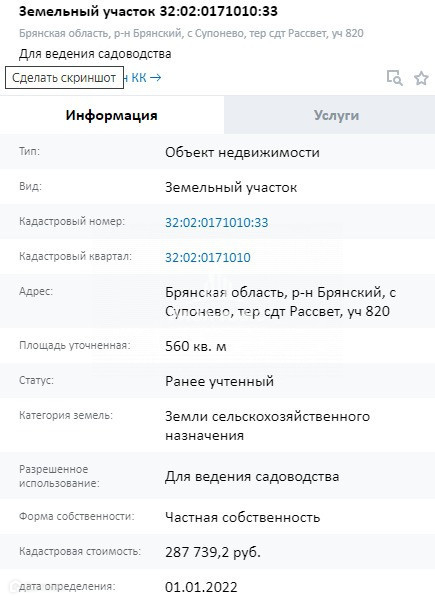 Адрес: г. Брянский район, с. Супонево СДТ Рассвет уч. 820.