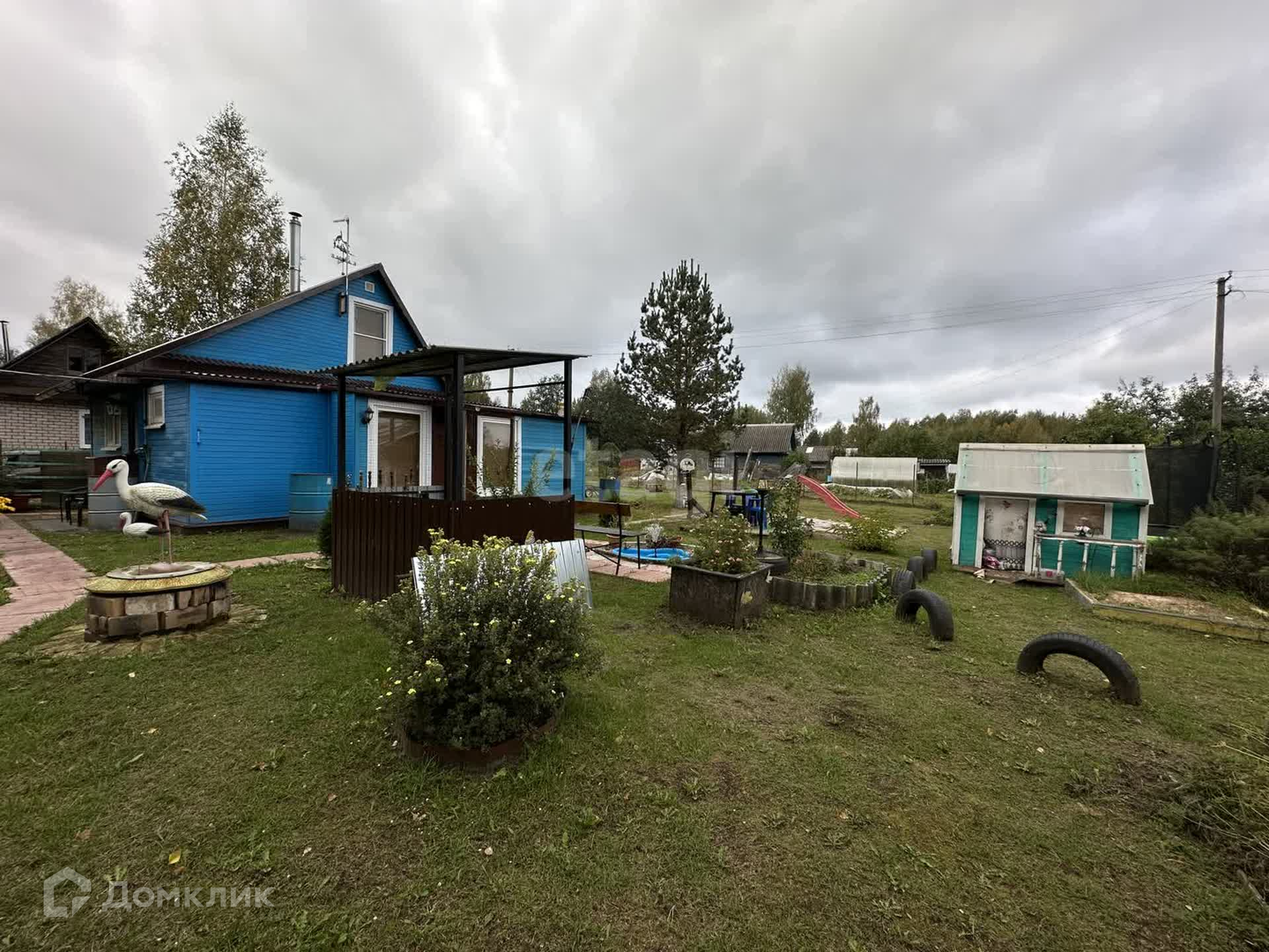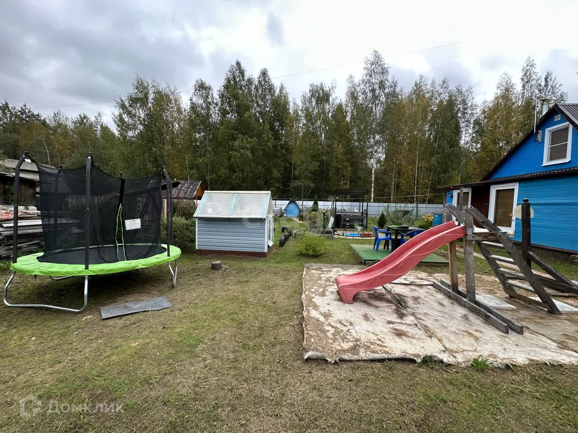На разработанном участке 9,5 соток земли имеется: зона барбекью, детская площадка, стоянка на 2 машины, дровенник, сарай, 2 теплицы, колодец для полива, ягоды, картошка, капуста, огурцы и многое другое.