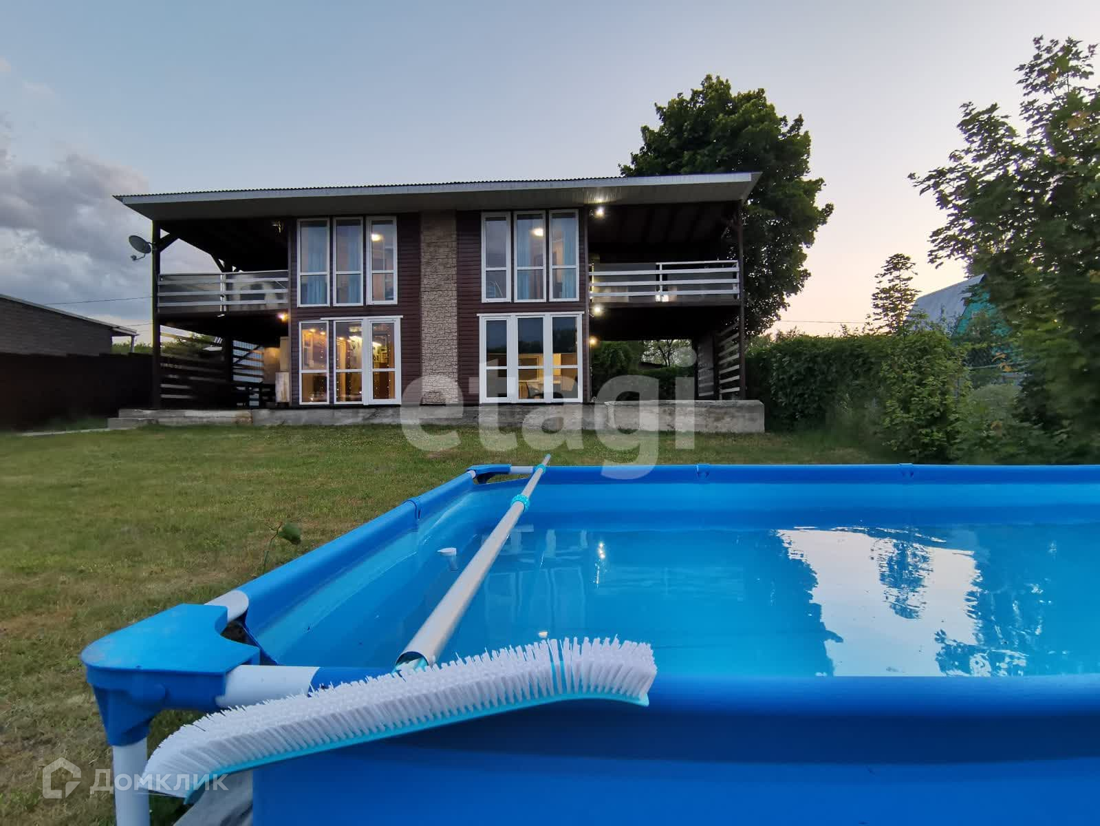Доп. описание: отопление: электрическое, канализация: выгребная яма (бак), также имеются: телефон, интернет, телевидение, кабельное телевидение, кондиционер, бассейн, камин, погреб, сауна, кухонный гарнитур, шкаф-купе, плита, мягкая мебель