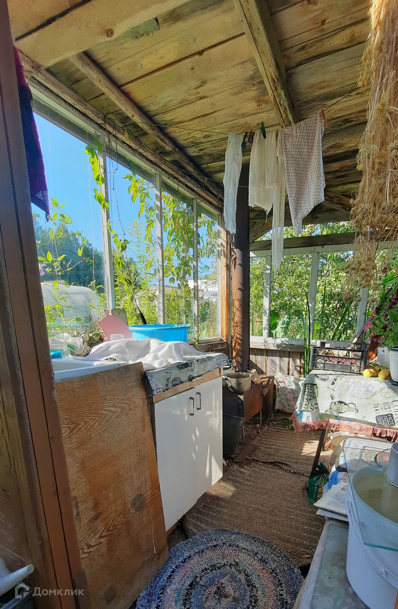 Отдельно стоит летняя кухня с буржуйкой, место для готовки. Есть кладовая и хоз.постройка для хранения инвентаря.