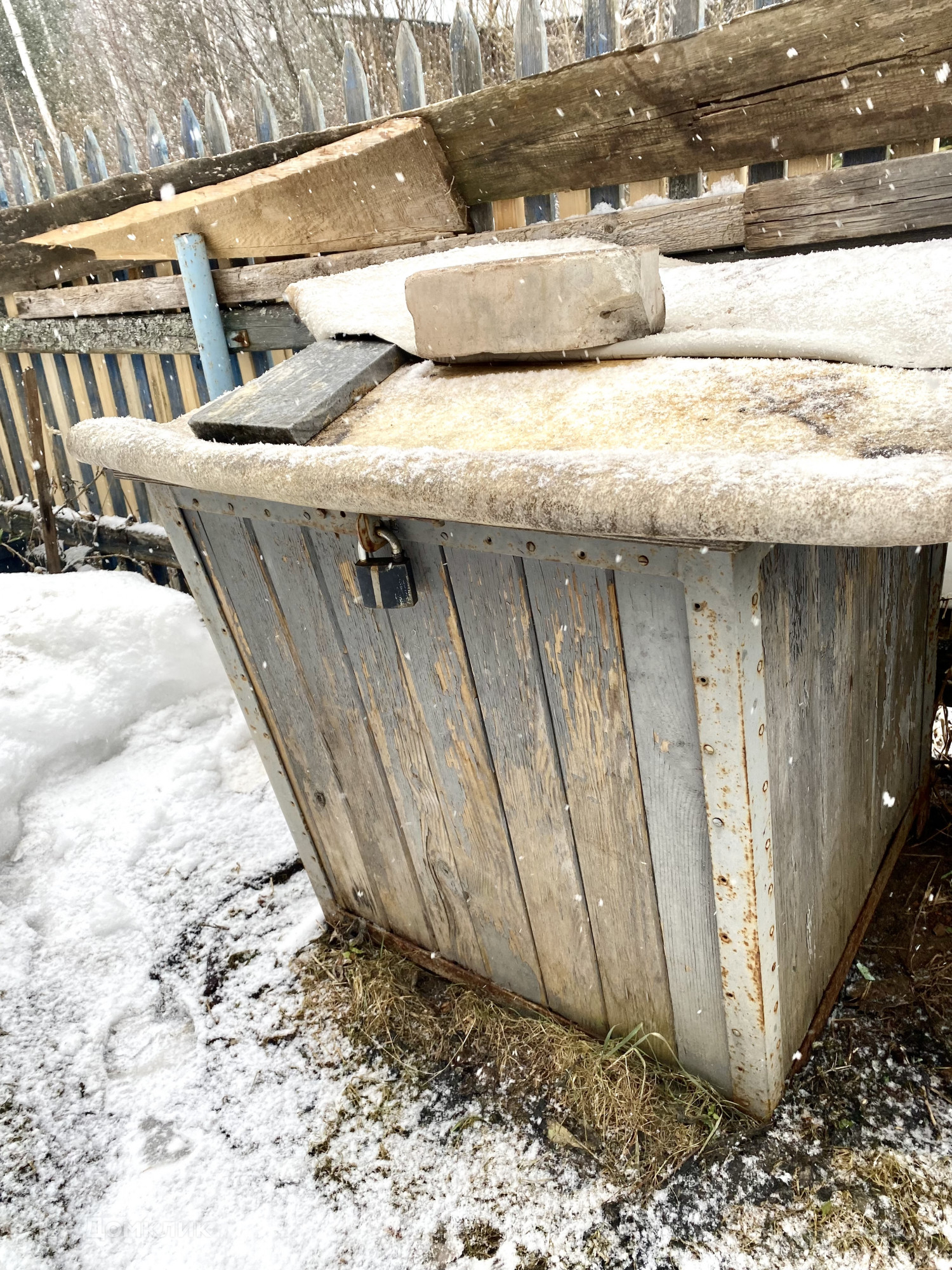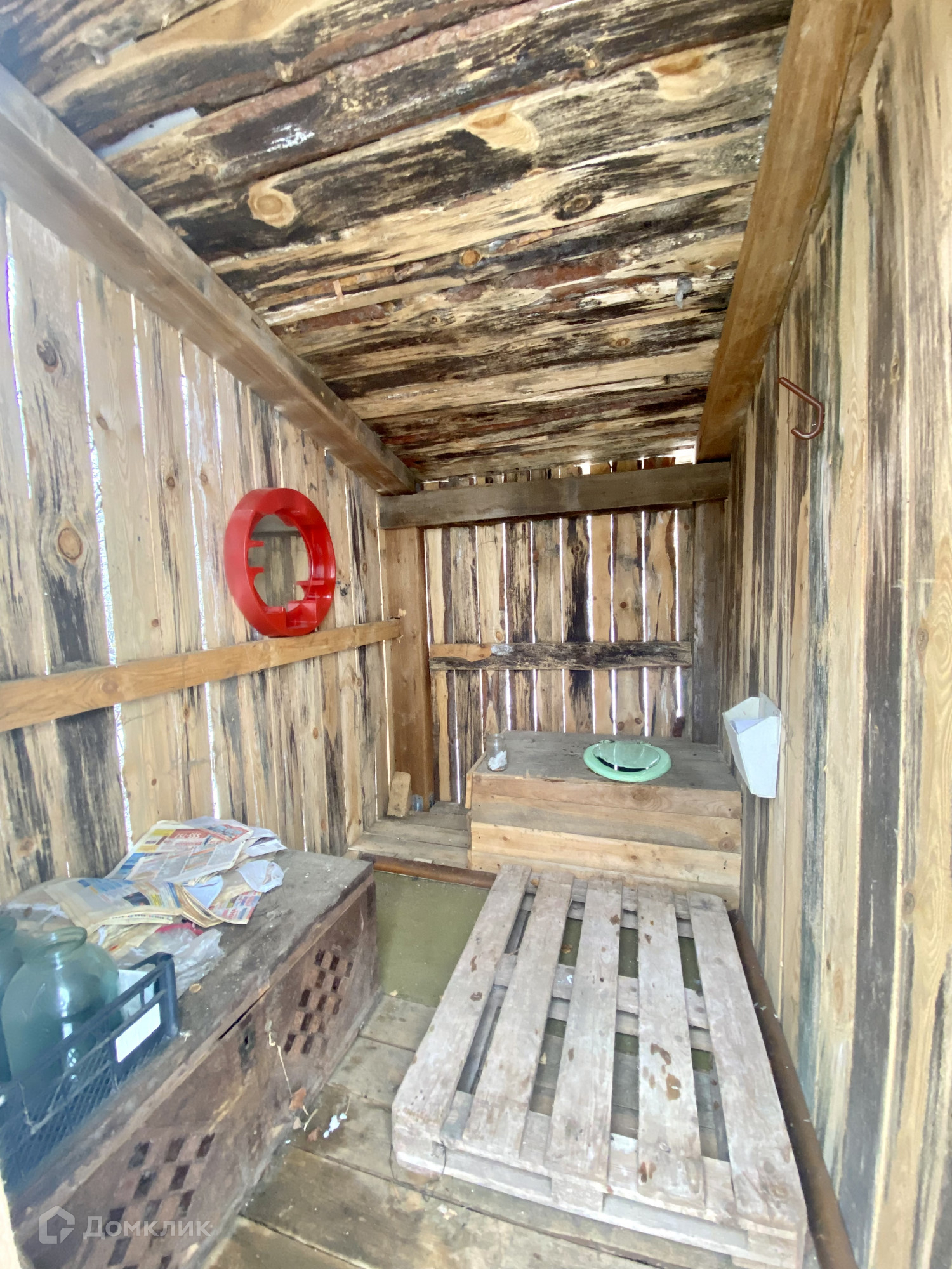 Напротив дома есть ещё 3 сотки земли, на которой расположена большая хоз. постройка под инвентарь и туалет.