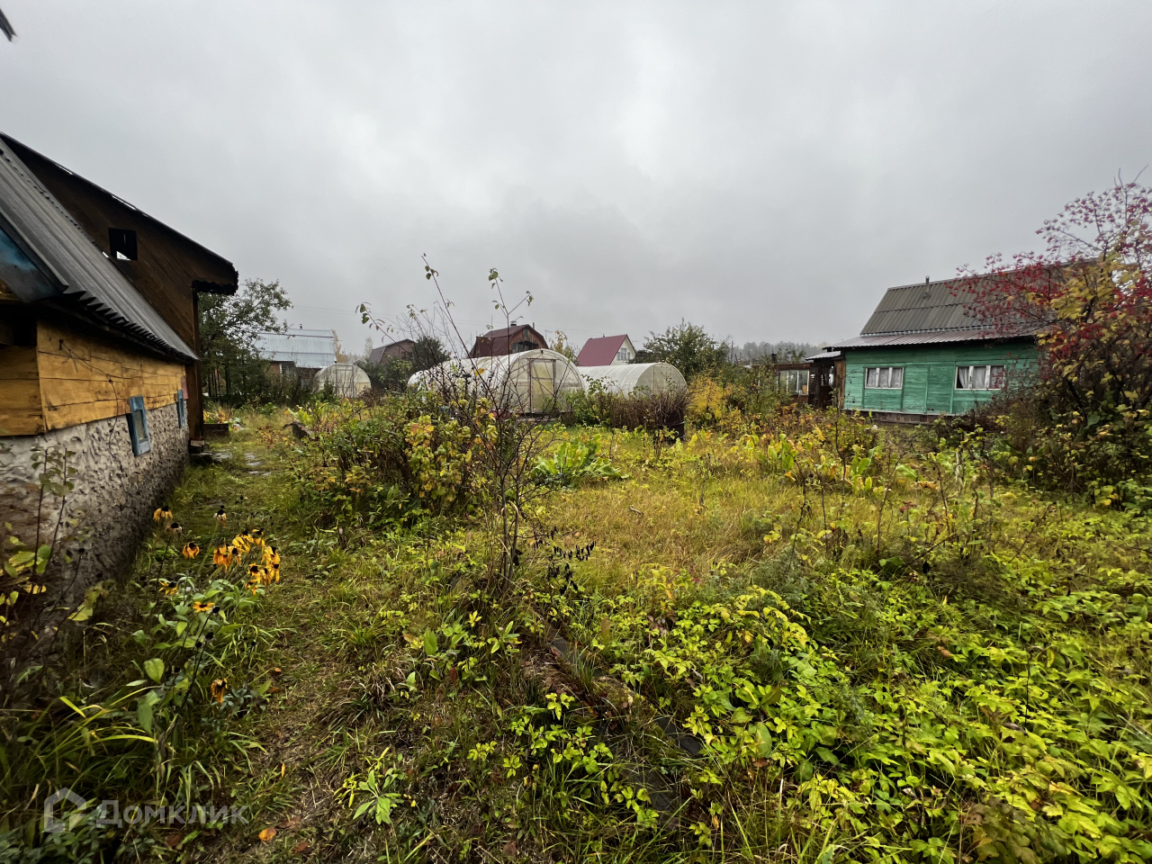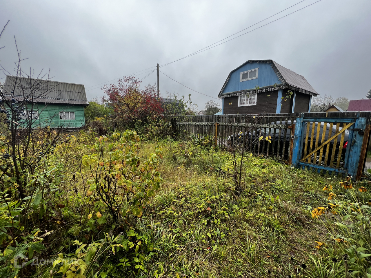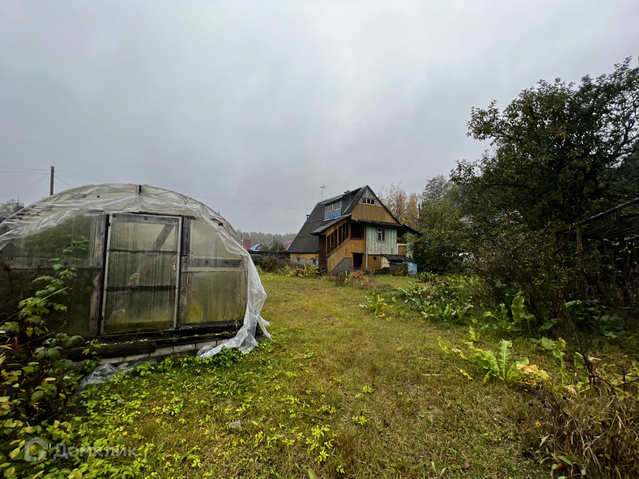 На участке располагается 2хэтажный садовый домик из бруса, отопление печное. Есть баня, мастерская, летний душ. Водоснабжение из скважины.
