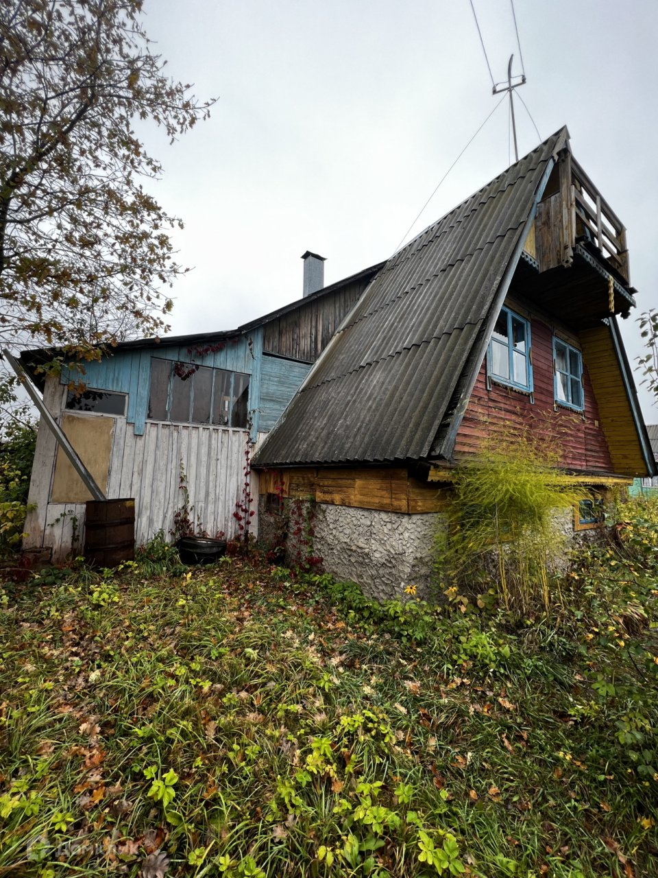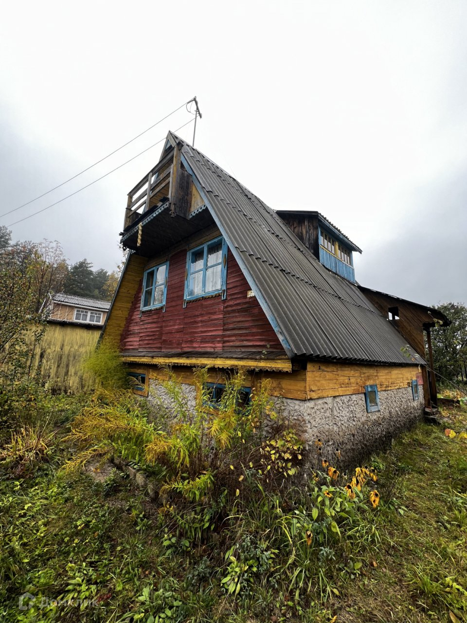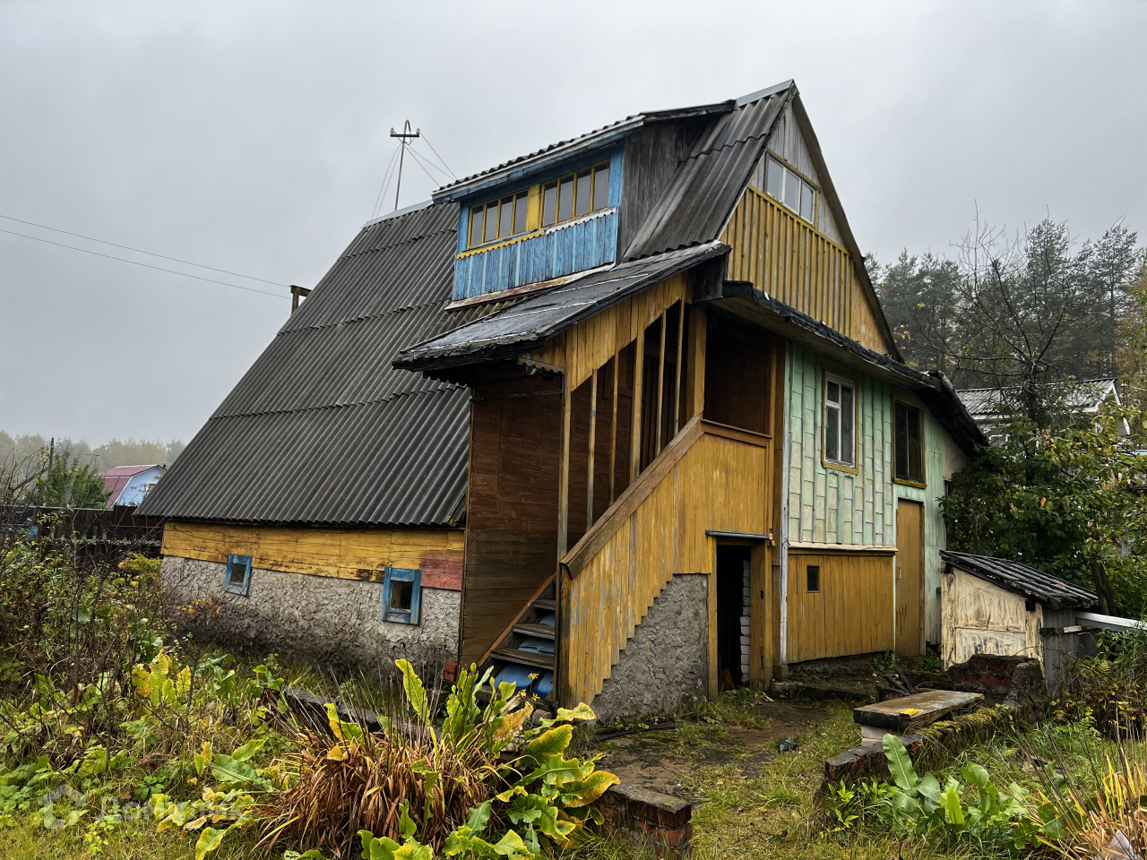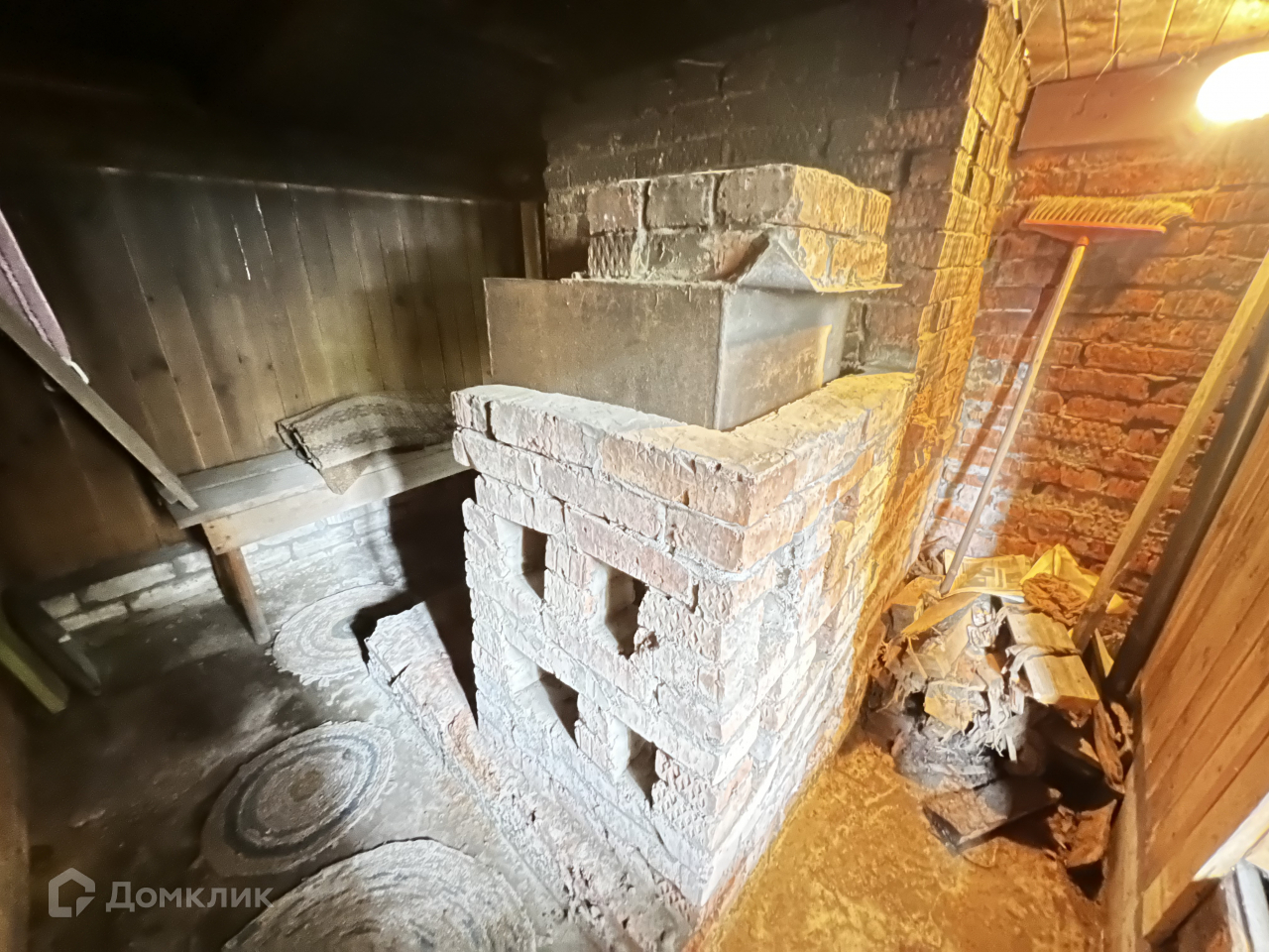 На участке располагается 2хэтажный садовый домик из бруса, отопление печное. Есть баня, мастерская, летний душ. Водоснабжение из скважины.