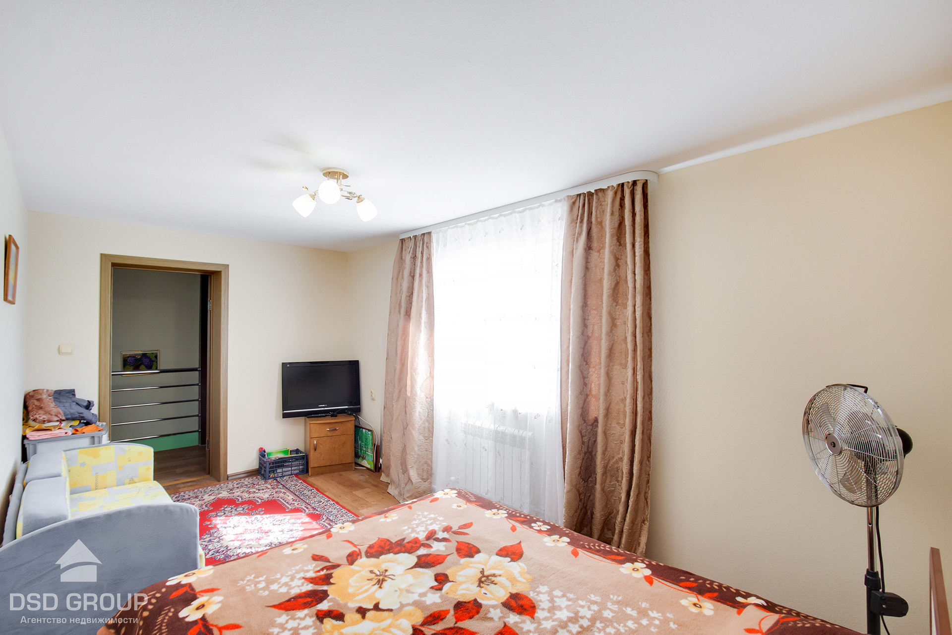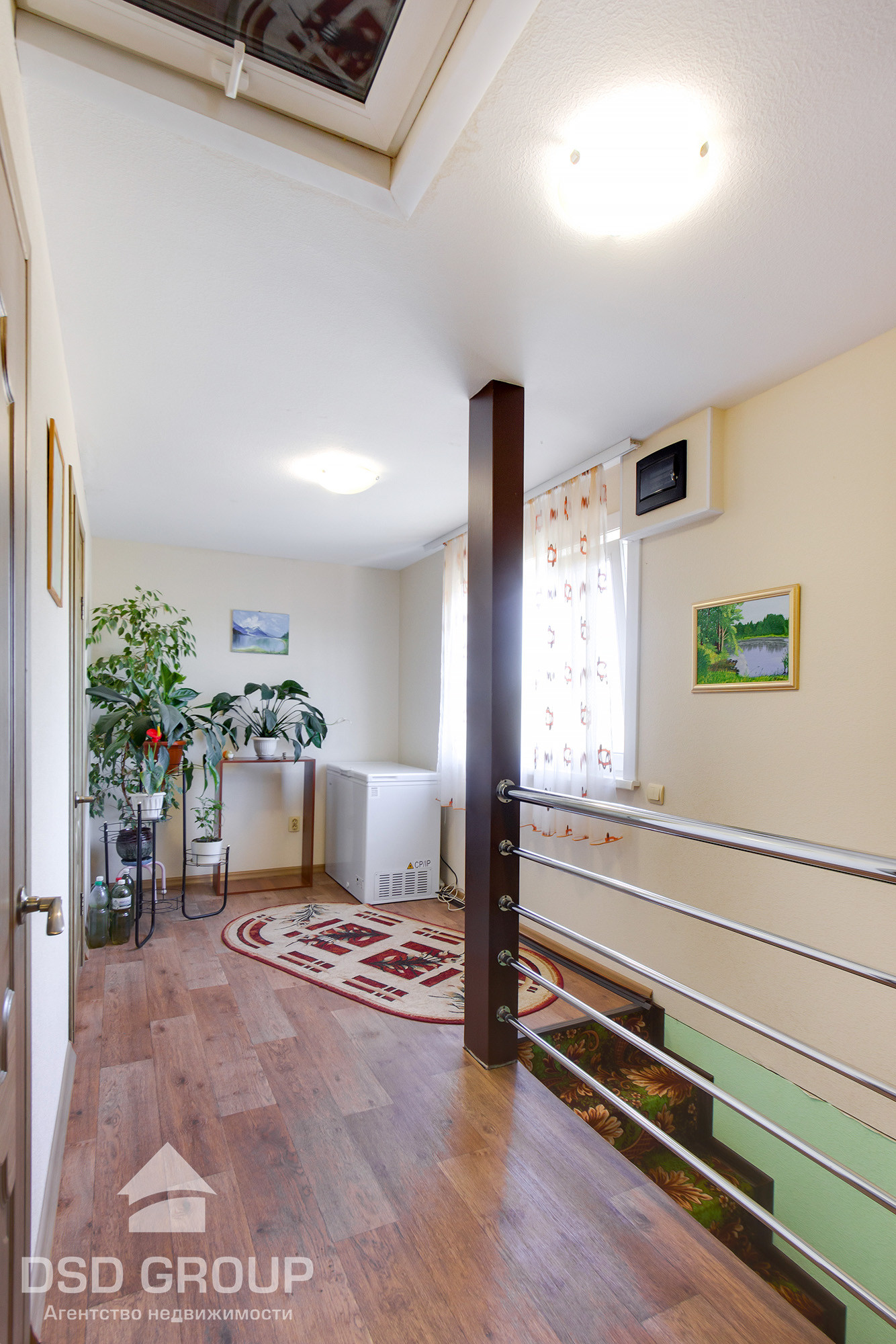 -Второй этаж: просторный холл, огромный шкаф-купе и две раздельные спальни.