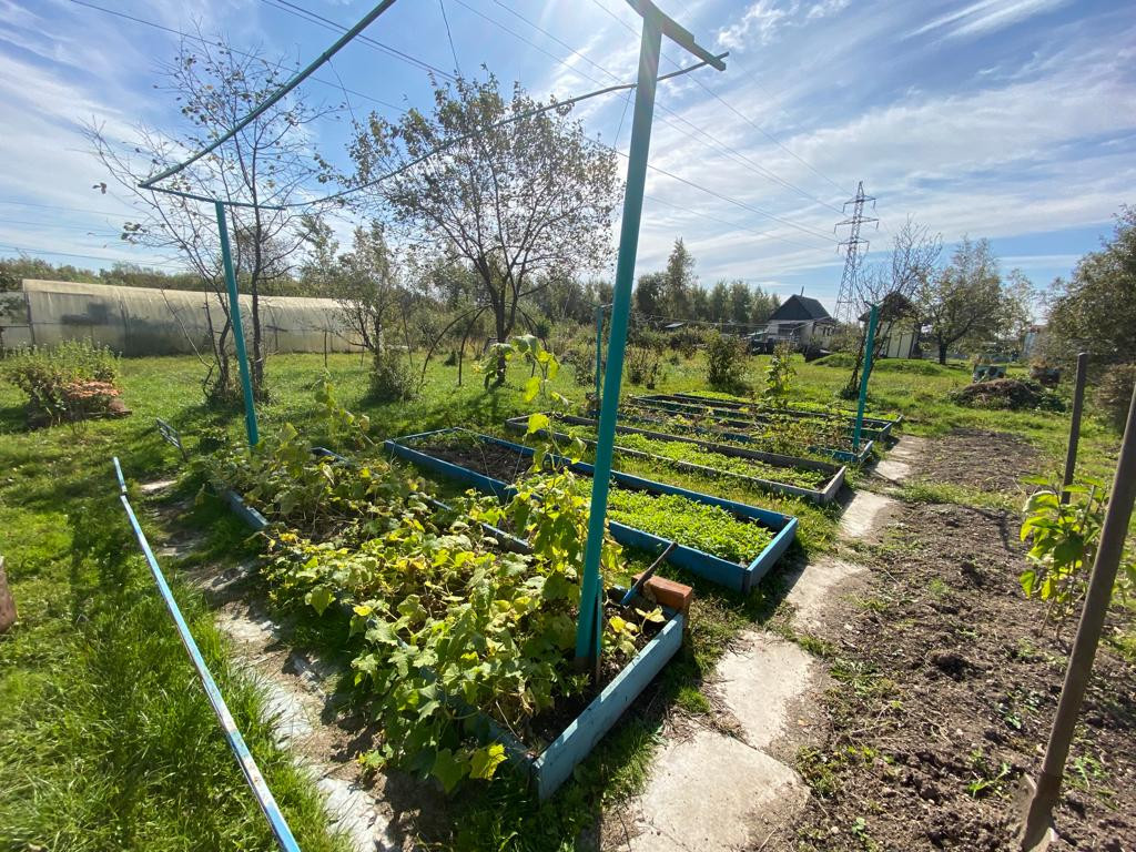Зеленые насаждения – виноград, ирга, жимолость, красная и черная смородина, слива, вишня, облепиха. Высажены седераты. В Теплице любые овощи на ваш стол, арбуз и ремонтантная клубника. Много цветов!