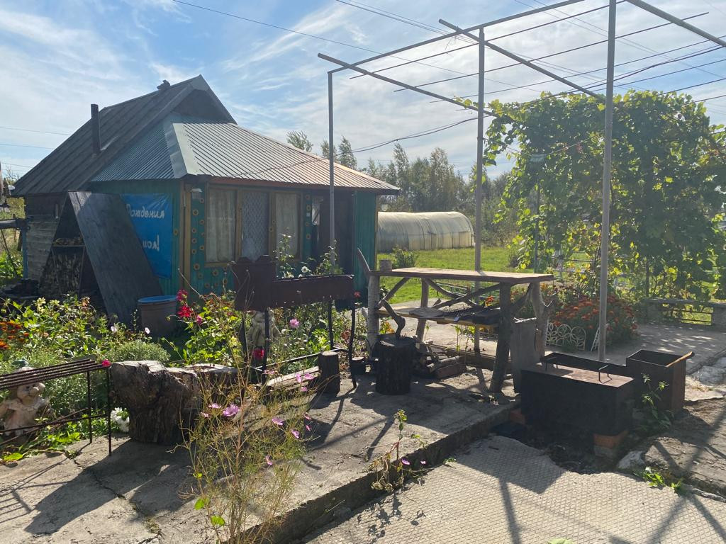 Есть место для большого детского бассейна. Теплица, дровница, резервуар на 100 кубов воды, три контейнера для хоз.инвентаря. Чистый ухоженный туалет с освещением. Парковка на большое количество машин. Мебель, бытовая техника, инвентарь, остается всё.
