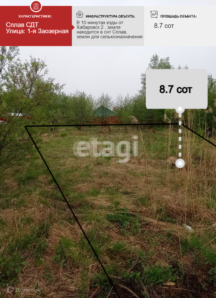 Площадь участка 8.7 сот.