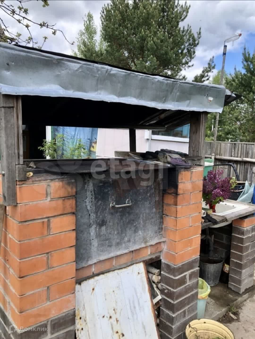 На участке имеется деревянный летний домик, сарай, туалет, колодец, душ, кирпичный мангал. В доме четыре спальных места.