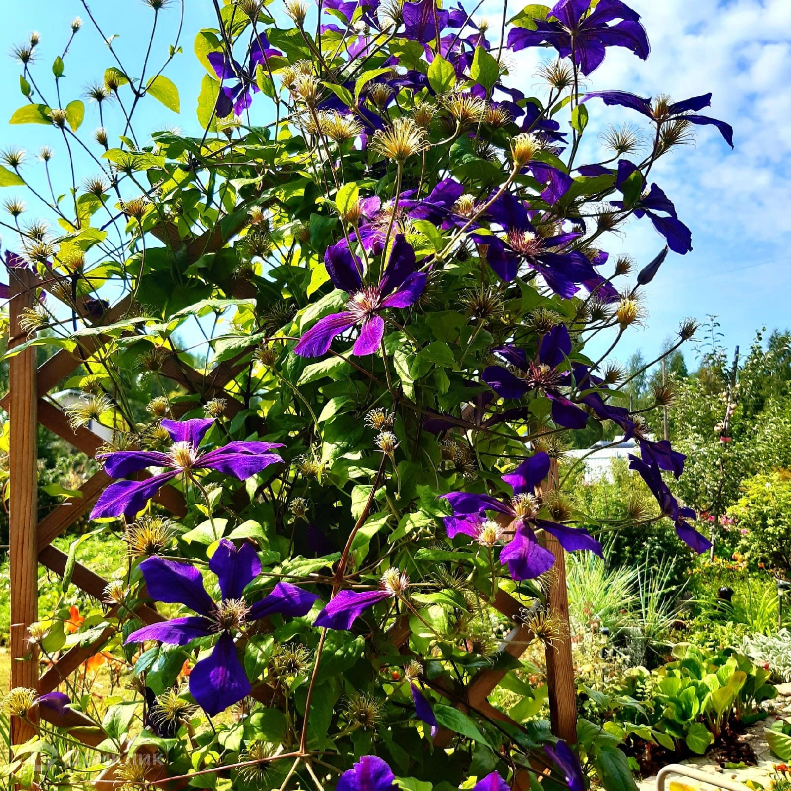Сад расцветает с мая по октябрь, выглядит шикарно благодаря различным видам цветов, кустарников (различная смородина, крыжовник, несколько сортов малины - чёрная, красная, медовая, ремонтантная), и деревьев (молодая яблоня, вишня, облепиха, груша, посажен грецкий орех, сирень, березки).