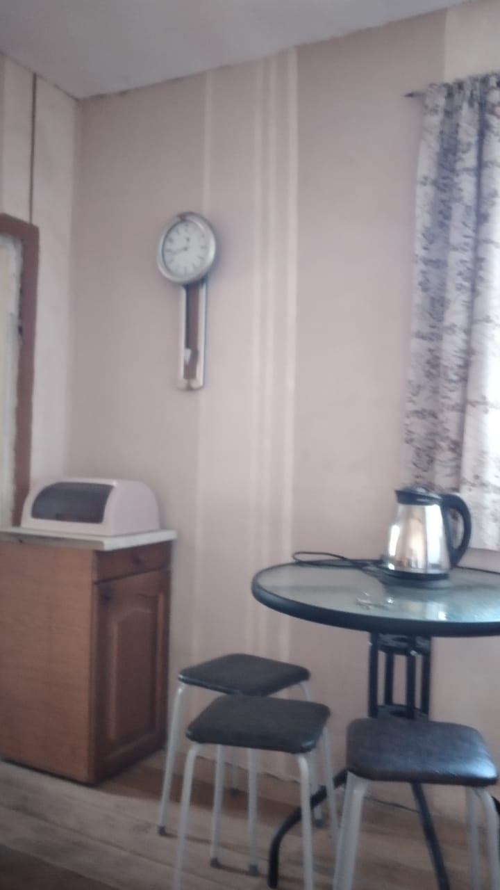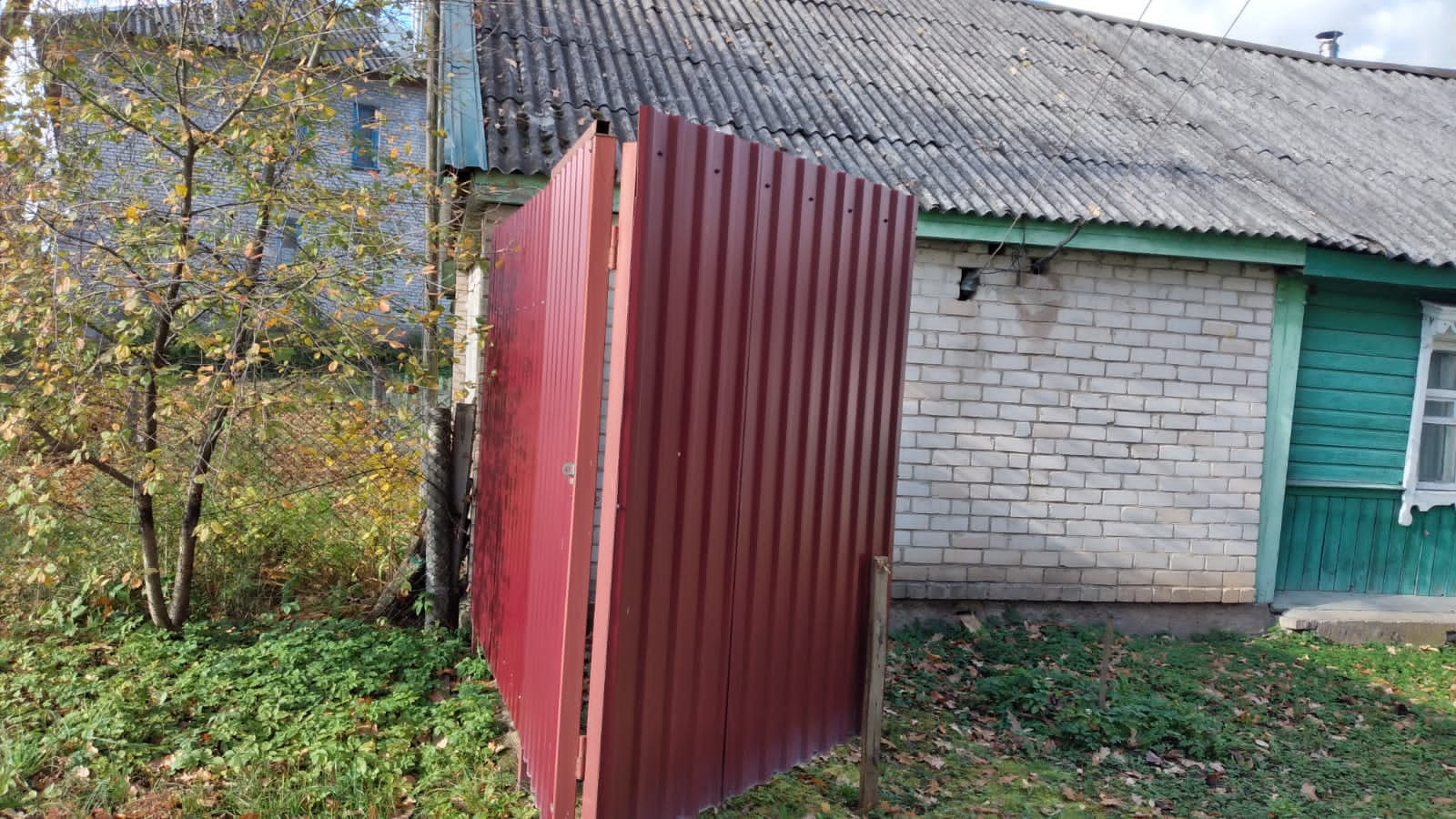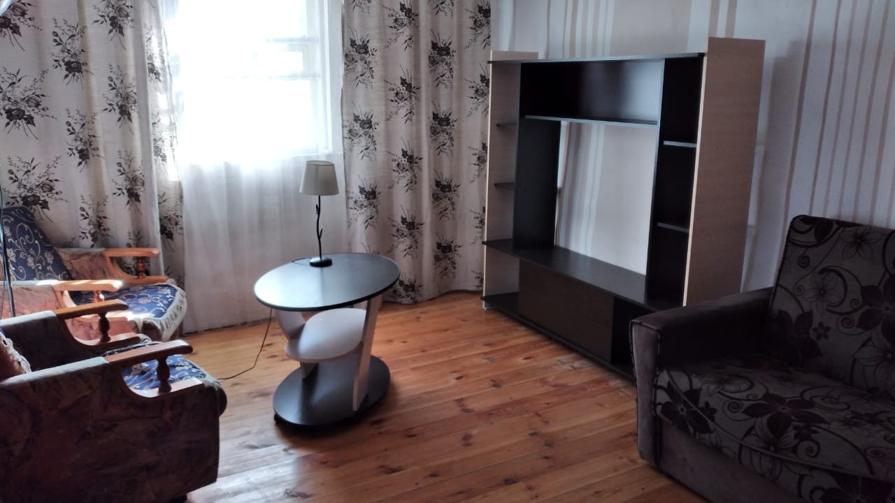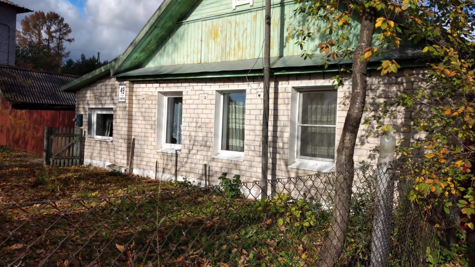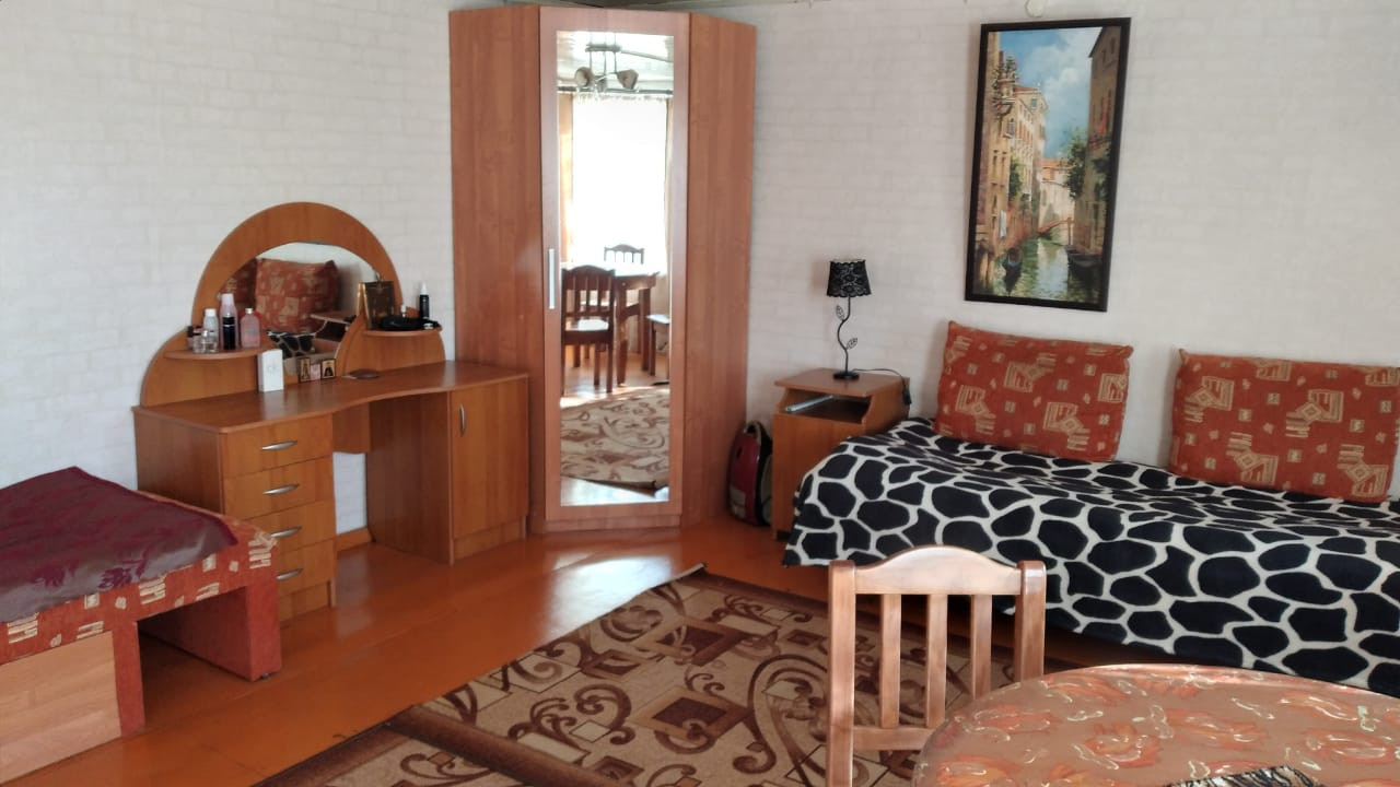 Прочный деревянный дом с двумя входами, в настоящее время распланированный под две квартиры с отдельными кухнями, санузлами. Половина дома обложена кирпичом. Прекрасный ровный участок с насаждениями, дровником, мастерской.
