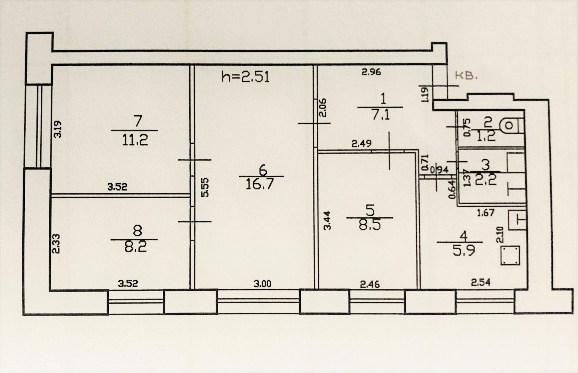 Площадь комнат: 16,7 кв.м.; 8,5 кв.м.; 8,2 кв.м.; 11,2 кв.м.;