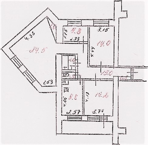 Все комнаты раздельные: 24,5 кв.м., 14,2 кв.м., 14,0 кв.м. и 4,8 кв.м.;