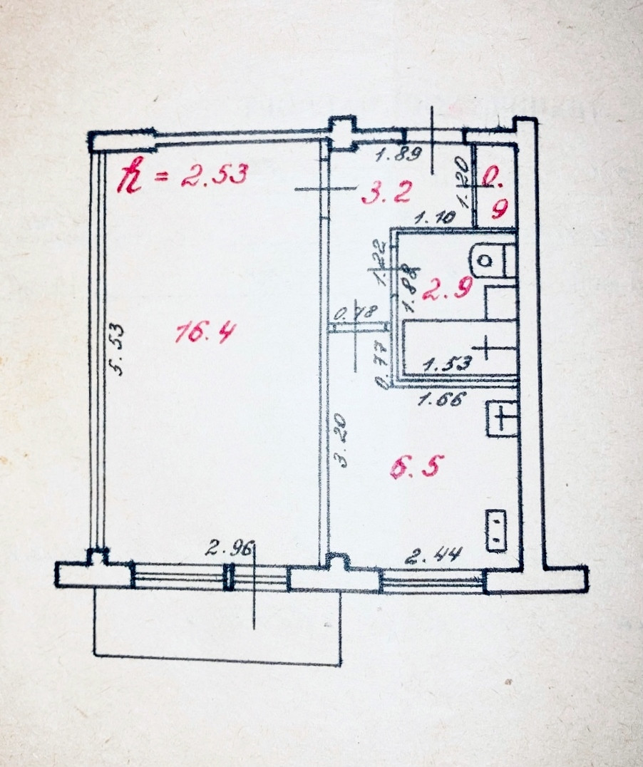 Высота потолков 2.53 м