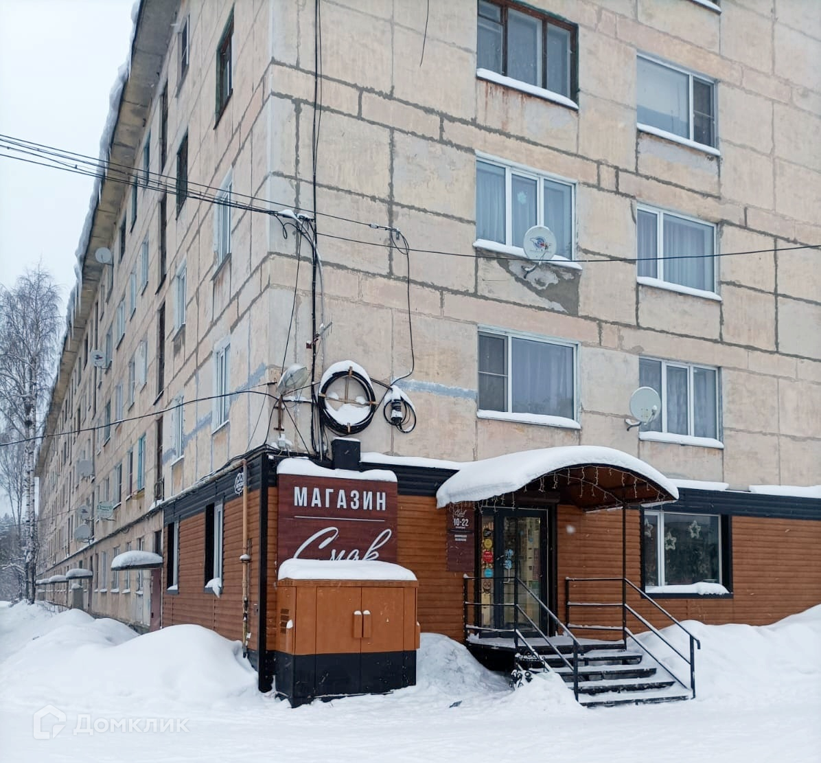 В жилом доме работает магазин. Рядом остановка городского автобуса. Во дворе есть детская площадка.