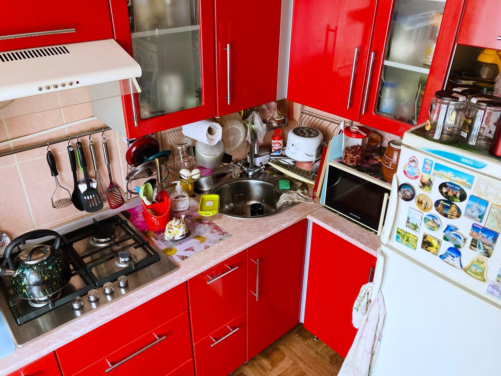 Остается: кухонный гарнитур, стенка, трехстворчатый шкаф, прихожая.