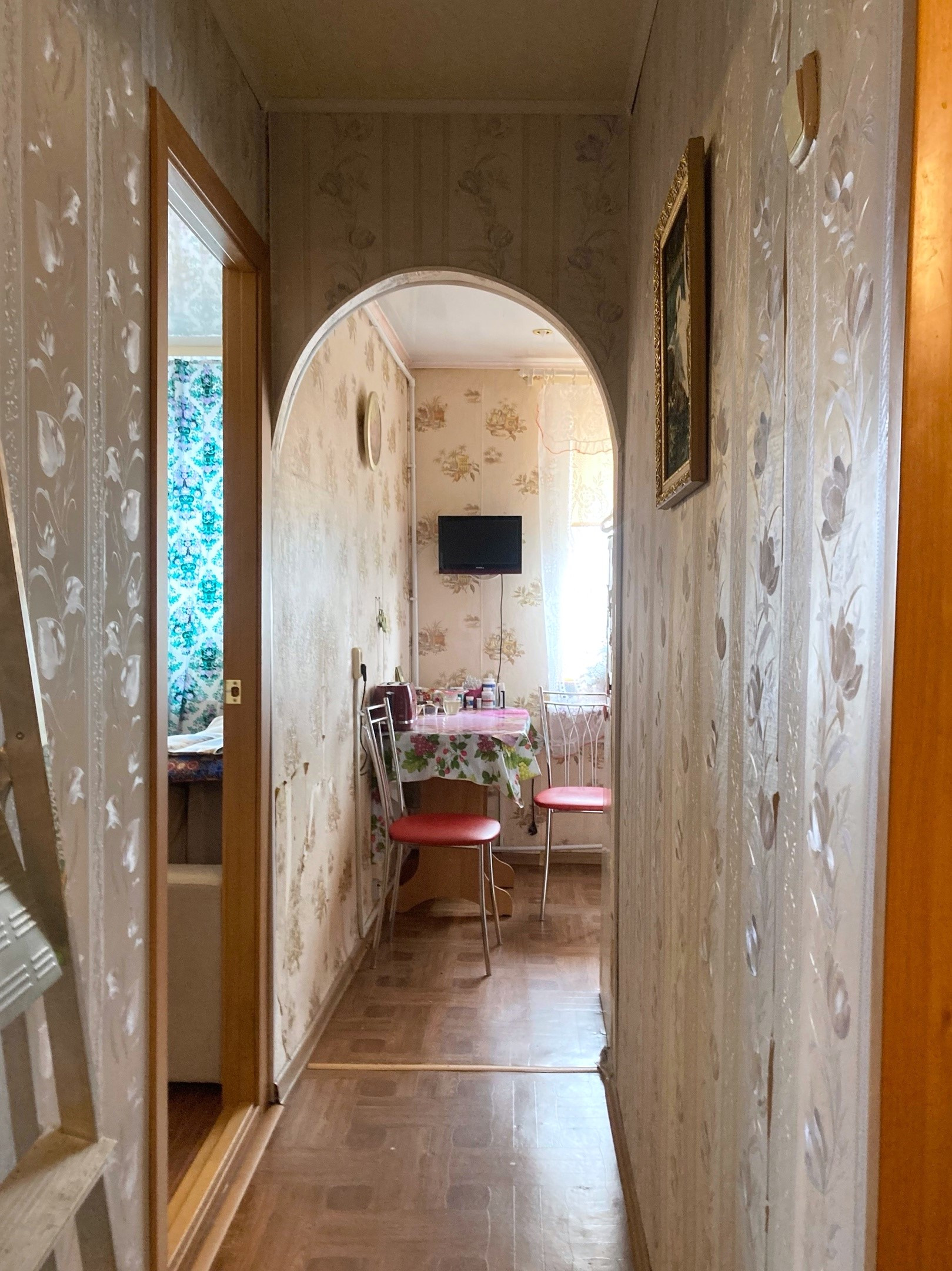 Окна заменены, в коридоре и на кухне -линолеум, потолок-панели;