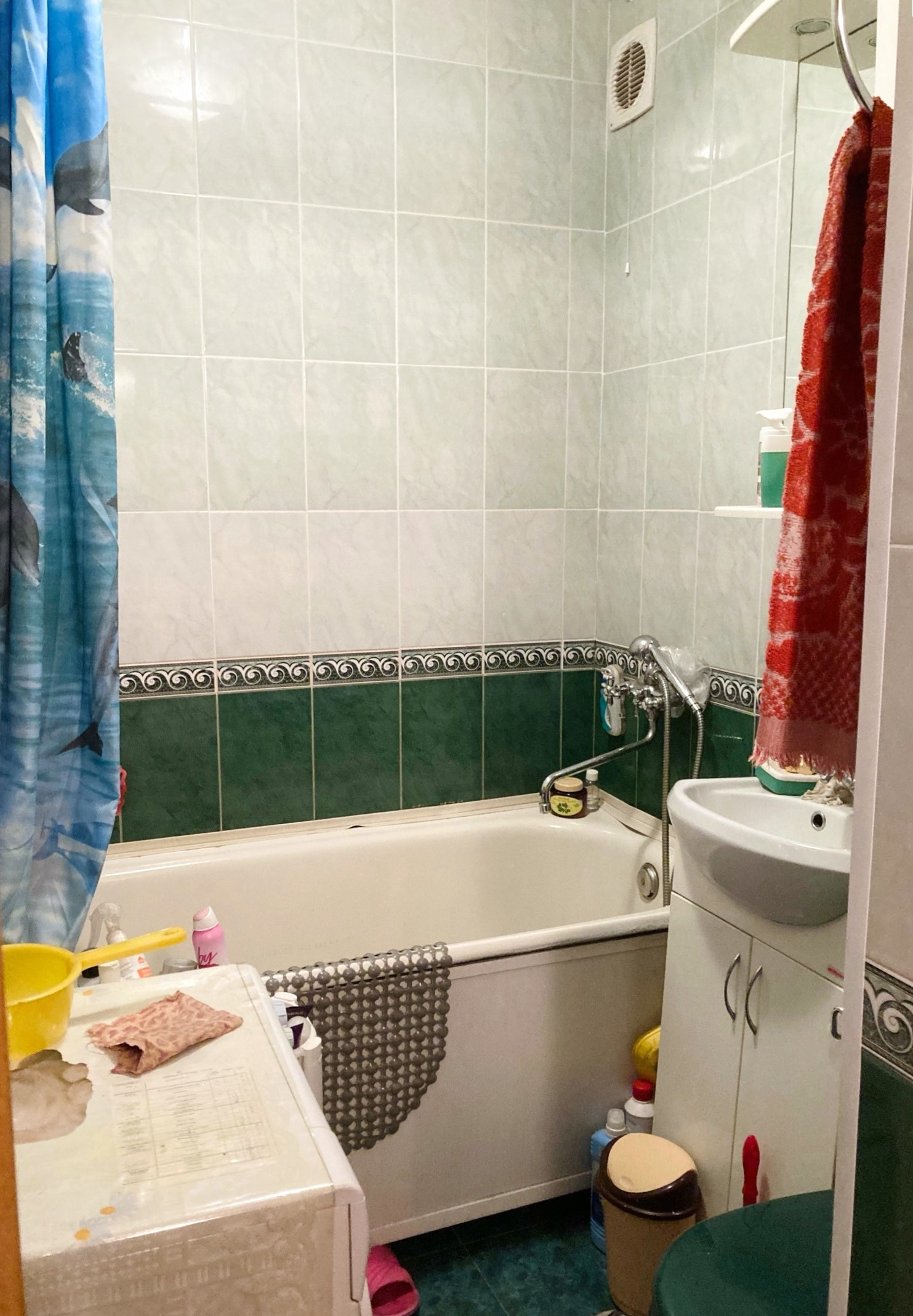 Сан.узел совмещенный, на полу и стенах - плитка;